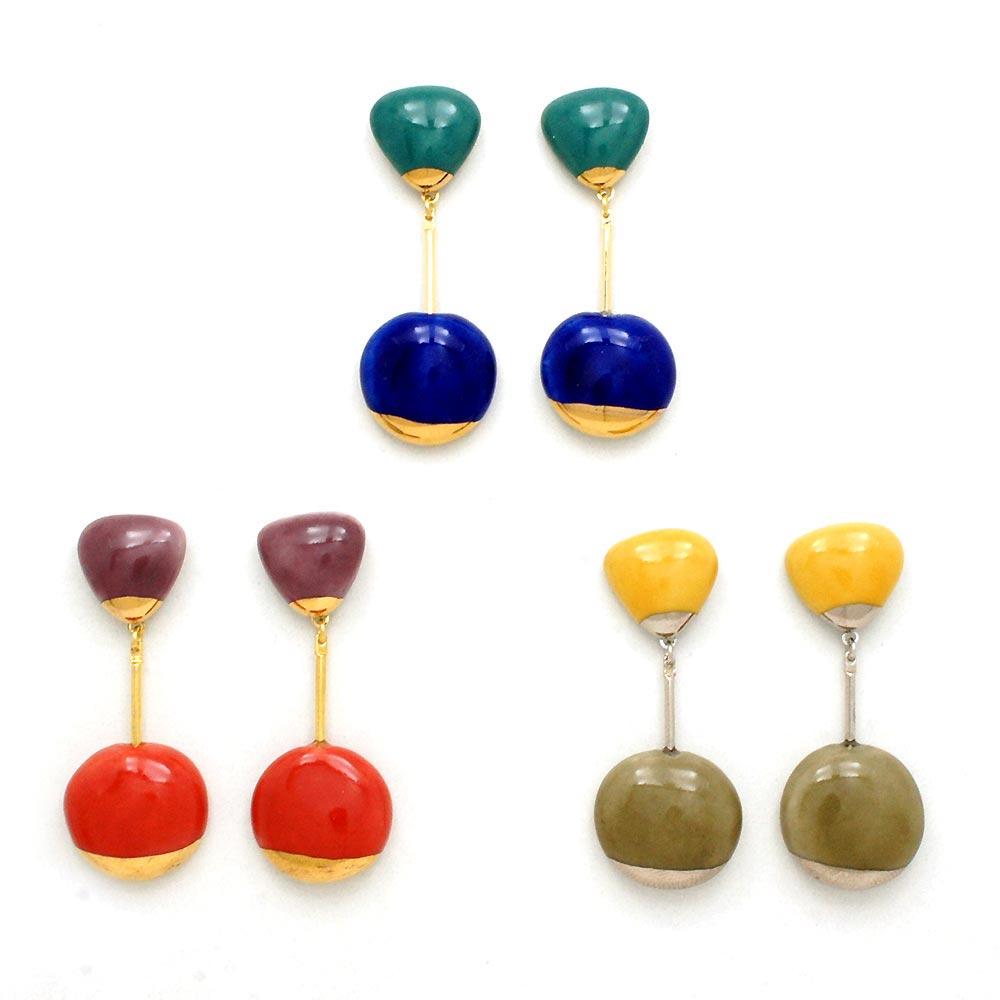 佐賀県の有田町で作られる有田焼の陶器とオリジナルメタルを組み合わせたアクセサリー。陶器は職人さんがひとつひとつ丁寧に作り上げているものなので、ポップなデザインの中にぬくもりを感じるシリーズです。