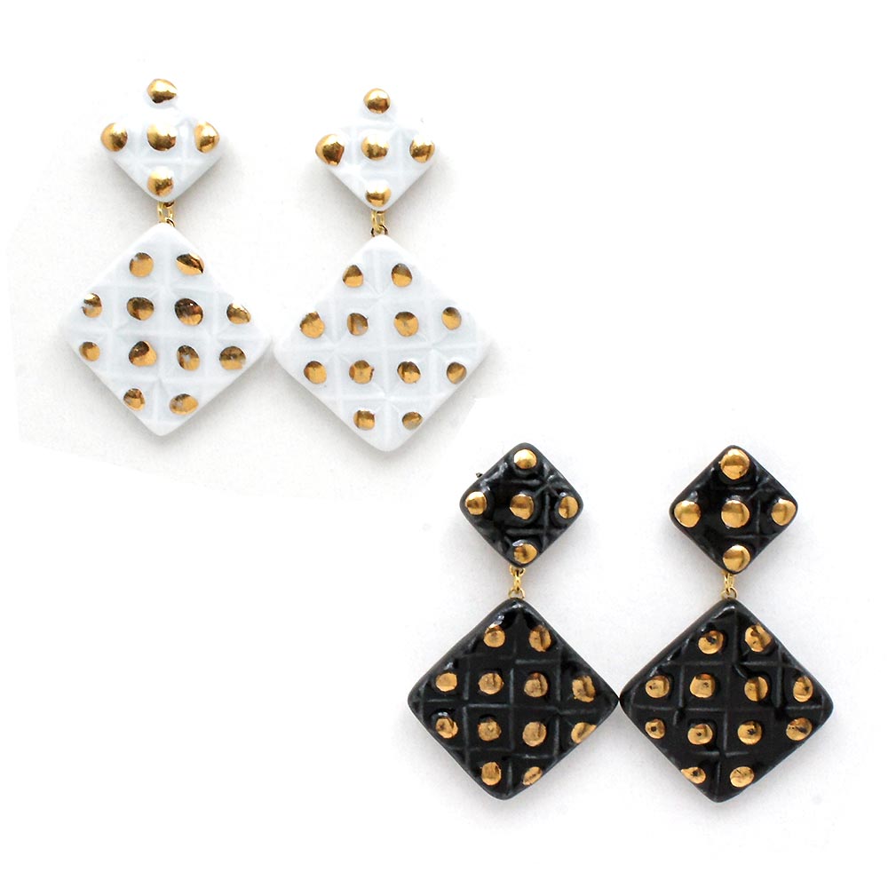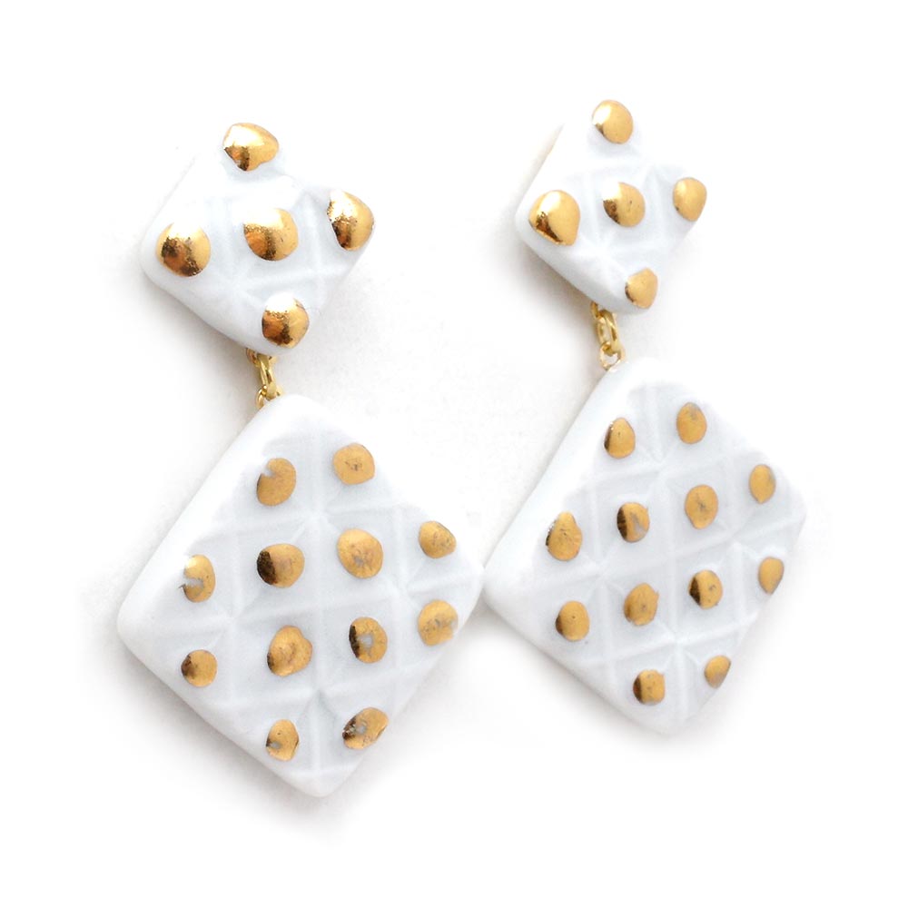 大口注文・法人のお問い合わせはこちら自分らしく生きる女の子たちのためのアクセサリーブランド「gargle(ガーグル)」の有田焼シリーズ。 ゴールドに白や黒のドットが大人っぽいデザインのピアスです。歩くたびゆらゆらと揺れ、横顔を上品に演出してくれます。カジュアルシーンはもちろん、結婚式などのオケージョンにもおすすめです。