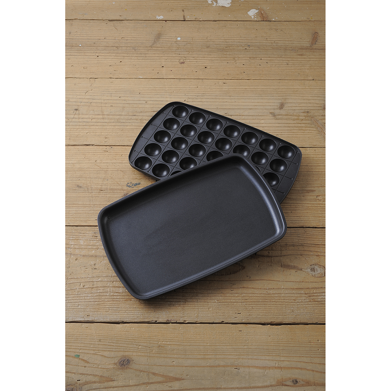 フッ素樹脂コートが施された平面プレートとたこ焼きプレートがセットになっているので、【焼く】はもちろん、フタを使って【蒸す】もおしゃれにこなします。