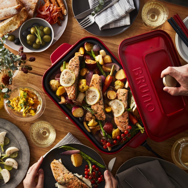 毎日のお料理からおうちパーティまで、様々なシーンで活躍する「BRUNO(ブルーノ)」のホットプレートが4~5人で愉しめるグランデサイズに。鋳物ホーロー鍋をイメージしたデザインです。家族みんなで、パーティーで、テーブルウェアのように食卓を彩ります。