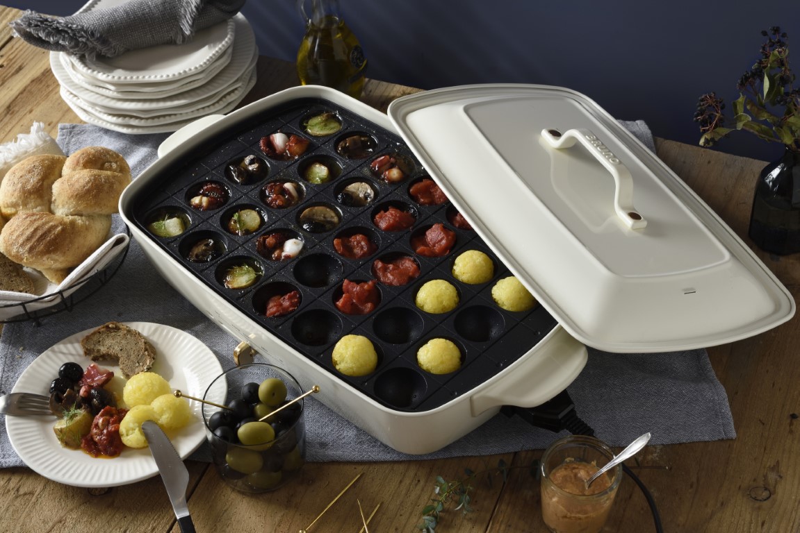 35個のたこ焼きが一度に作れるプレートは、たこ焼きだけでなくアヒージョなどもお楽しみいただけます。