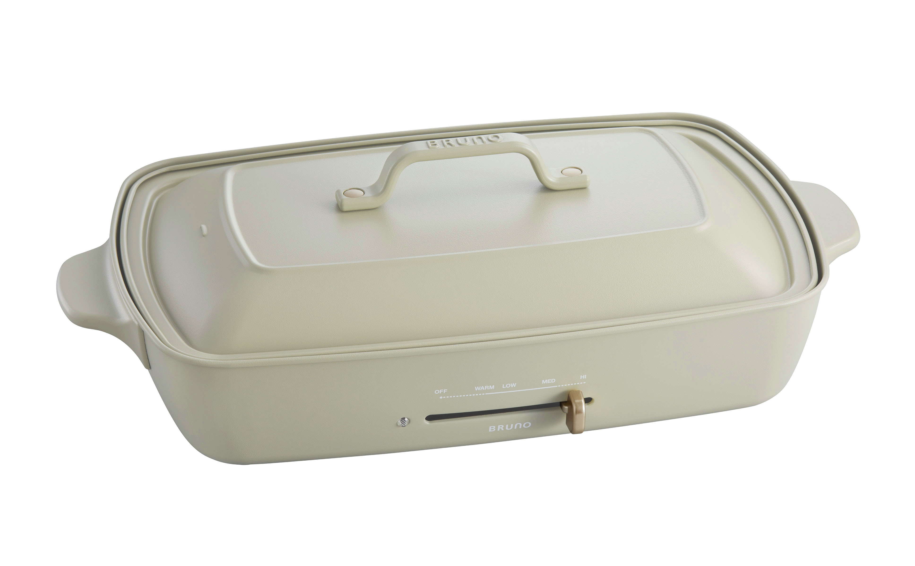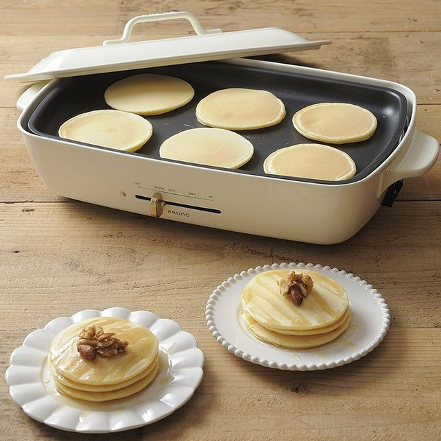 大口注文・法人のお問い合わせはこちら毎日のお料理からおうちパーティまで、様々なシーンで活躍する「BRUNO(ブルーノ)」のホットプレートが4~5人で愉しめるグランデサイズに。鋳物ホーロー鍋をイメージしたデザインは、テーブルウェアのように食卓を彩ります。