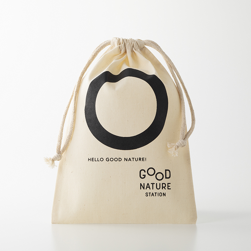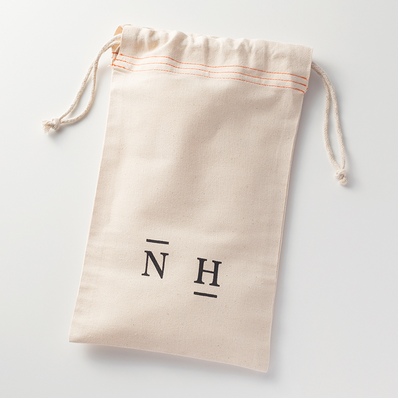 持ち運びに便利な「NEMOHAMO」オリジナルの巾着袋が付いています。旅行や出張などの外泊時にも、スキンケア用品を1つにまとめて携帯できるので便利です。コットン100%の生地を使用しています。