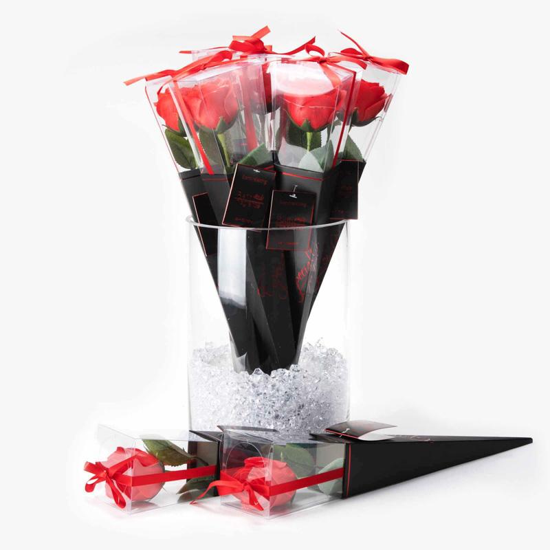 大口注文・法人のお問い合わせはこちらBLACKのシックなボディにメタリックなREDの印字。真っ赤なバラの魅力を引き出し、ワンランク上の贈りものに。ブランドオリジナルのパッケージに入っています。