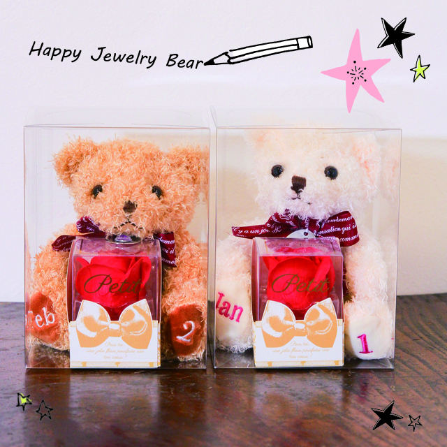 「フラワーギフトとして楽しんだ後に、使って終われる商品がほしい」というお客様の声から生まれたバスフレグランス「花のカタチの入浴剤」です。キュートなクマのぬいぐるみの足には月ごとに数字が刺繍されています。贈る相手の方に合わせて選んでみてはいかがでしょうか。