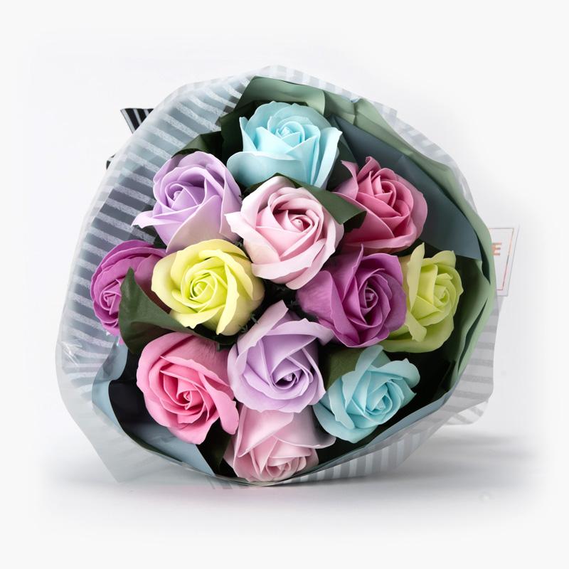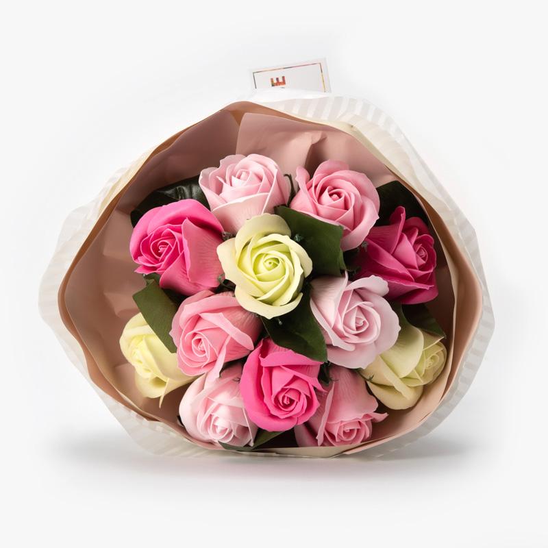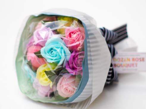 12輪の薔薇に想いが込められたダズンローズブーケ。見た目はプリザーブドフラワーそっくりな入浴剤です。 贈られたらびっくりすること間違いなし!記念日などのサプライズギフトにも最適です◎ 花びら一枚一枚をお風呂に浮かべて、癒やしのバスタイムを。