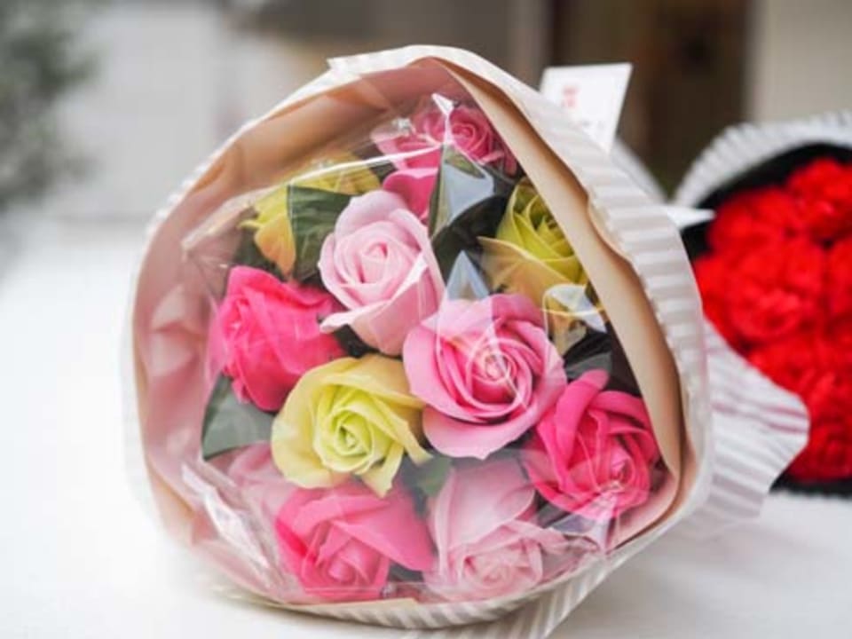 インテリアとしてお部屋に飾って、優しい石鹸の香りを楽しむのもよし! 玄関やリビングの華やかな空間づくりにも最適です。