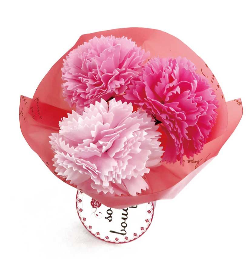 「フラワーギフトとして楽しんだ後に、使って終われる商品がほしい」というお客様の声から生まれたバスフレグランス「花のカタチの入浴剤」です。鮮やかな赤や、パステルカラーの花を使用したブーケスタイルが魅力です。全体をピンクにまとめた3種類からお選びいただけます。