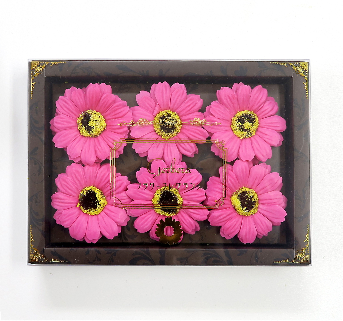 元気よくまっすぐに咲くガーベラをモチーフにした入浴剤です。カラーバリエーション全6種類からお好きな色をお選びください。