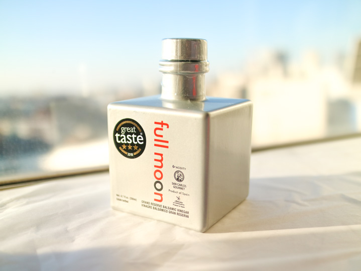 料理の色を変えずに豊かな味わいを与える、世界で唯一の無色透明ホワイトバルサミックビネガーです。 ペドロヒメネス種ぶどうから、伝統的なソレラシステムを使いアメリカンオーク樽で熟成されました。 フルムーン・エキストラバージン・オリーブオイルと組み合わせて料理を美味しく仕上げます。 特にサラダ、ガスパチョ、魚介、トマト、ソース、肉や魚のグリルに大変良く合います。