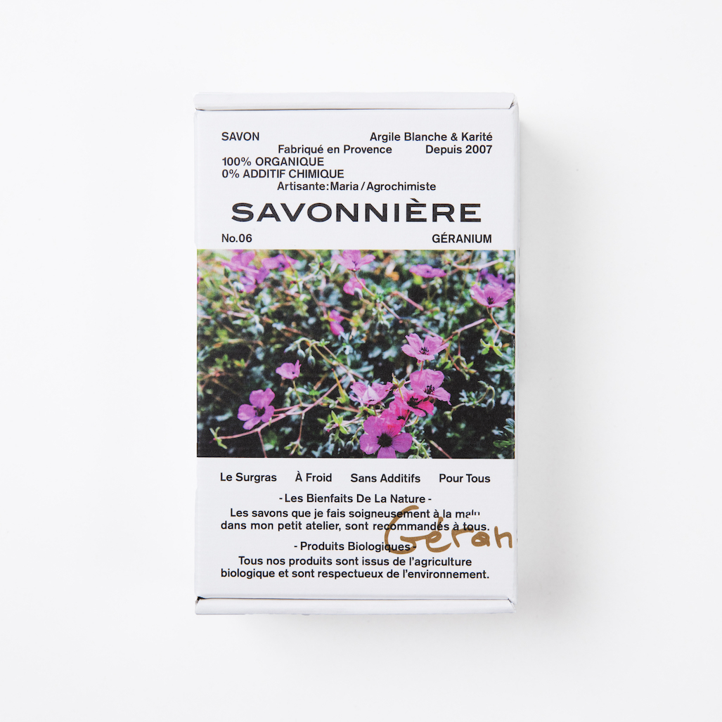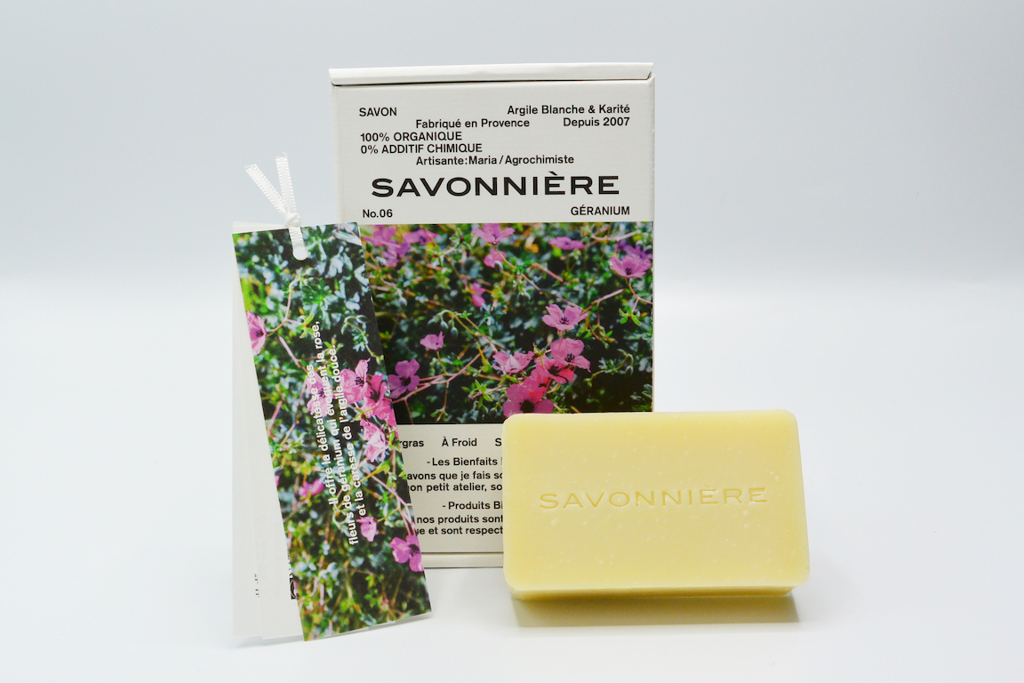 フランスでは、女性の石鹸職人をサヴォニエールと呼びます。その職業の名前がついたマダム・マリアが作る「SAVONNIÈRE」は、南フランスの小さな町で誕生しました。農学技術者のマリアは、自身の乾燥肌の悩みから、独自のレシピで石鹸を処方し、その後、町の人々の健康を守ってきました。 生命力に富んだオーガニック原料のみを使用し、人の手を加えるのを最小限に抑えて、植物の持つ力をありのまま届けることを目指した「誠実な石鹸」は、全てが本物、自然の摂理に則った、人と地球に優しい石鹸です。自然療法に基づいた「SAVONNIÈRE」は、マダム・マリアの生き方が反映されているオーガニック石鹸のブランドです。