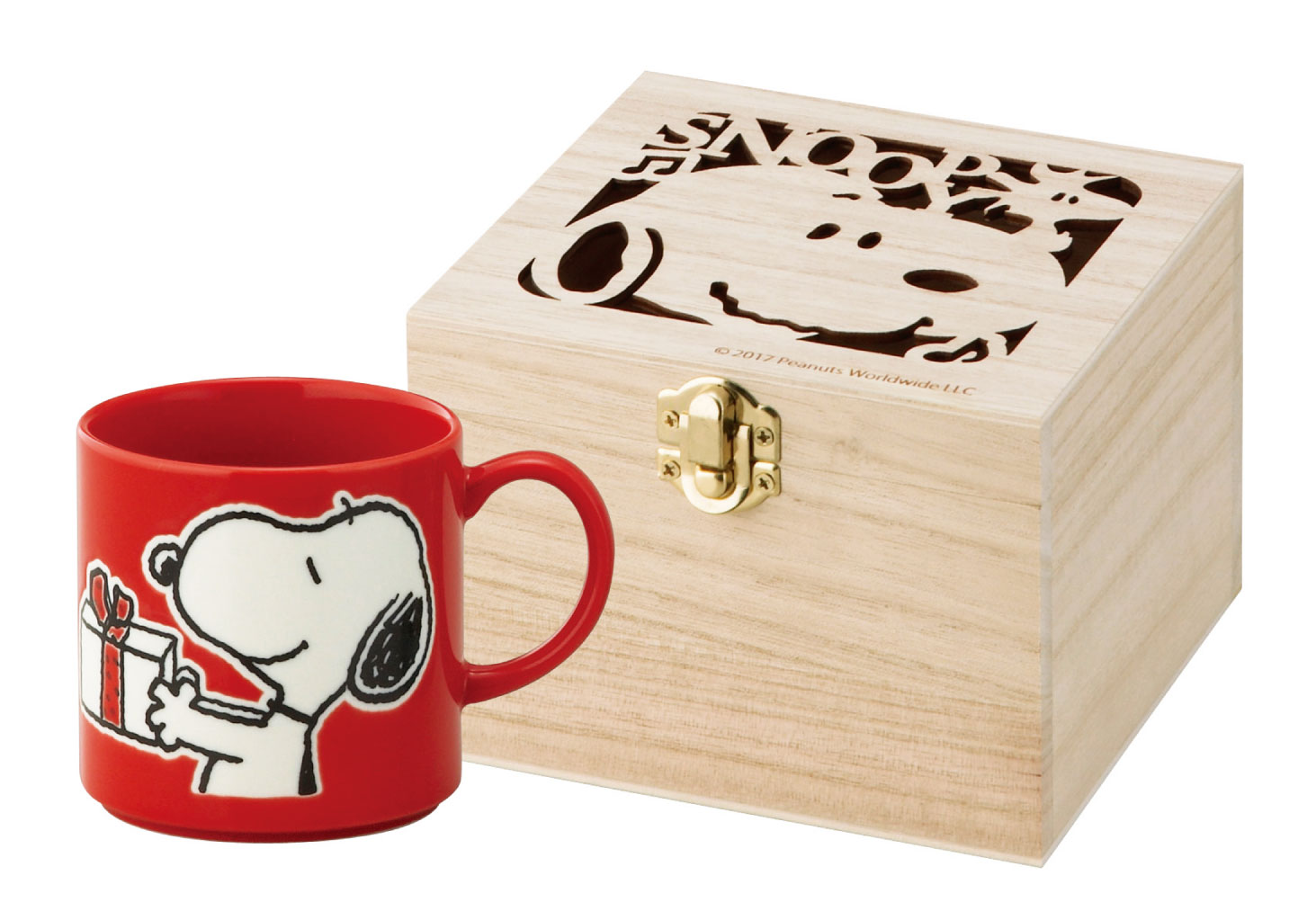 大口注文・法人のお問い合わせはこちら・マグ×1個 ・木箱×1箱 レトロな色が可愛いスヌーピーのマグです。透かし彫りの木箱に入っています。マグカップはレンジ、食洗機の使用もOKです。