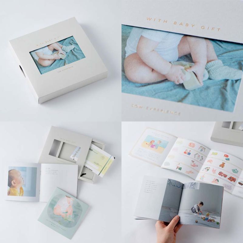 生まれてすぐはもちろんのこと、6カ月~1歳以上の子どもが楽しめるお出かけ体験やおもちゃもあるので、幅広いご家庭に贈れます。