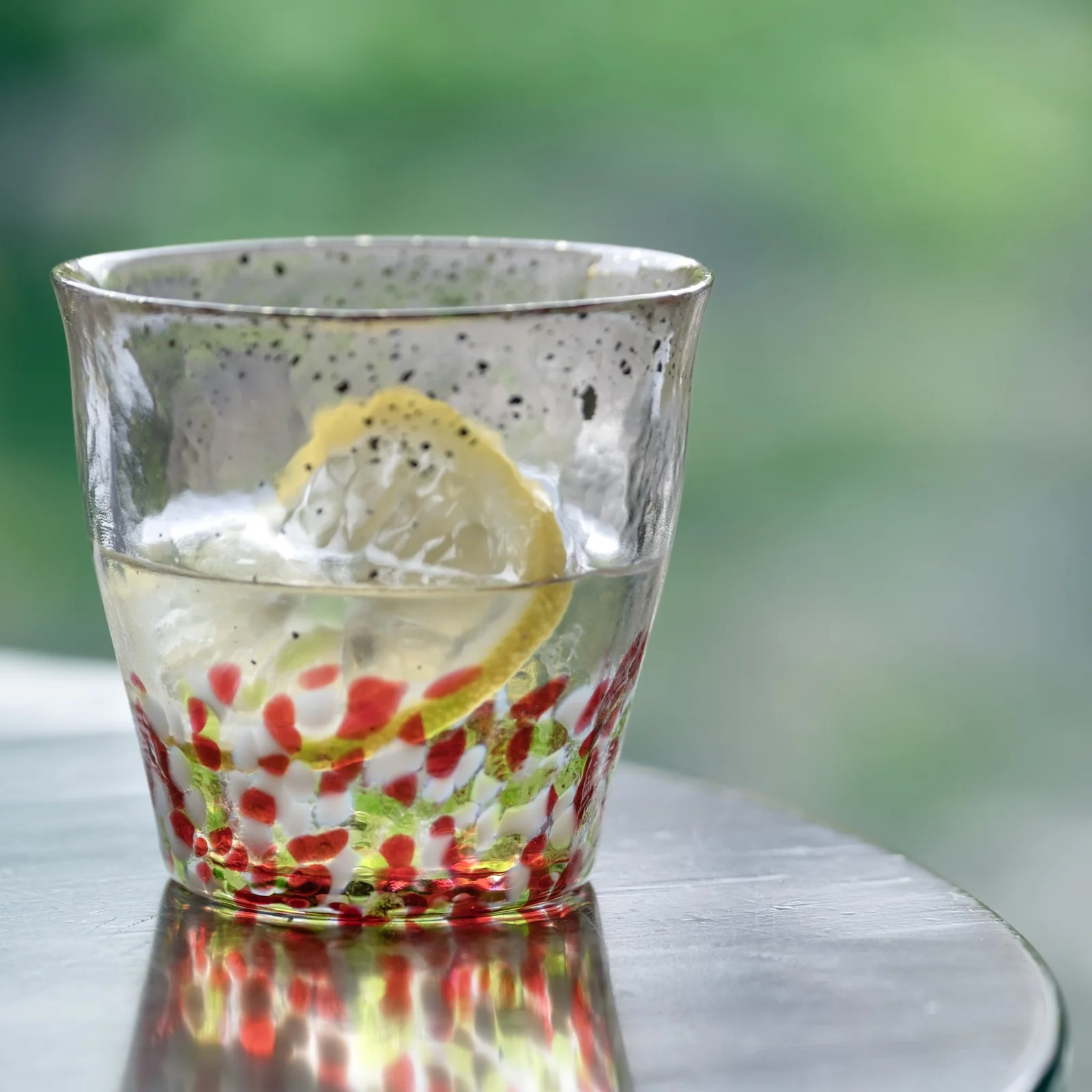 大口注文・法人のお問い合わせはこちら津軽びいどろで作られたロックグラスです。 形は底から飲み口にかけて徐々に広がります。 綺麗で上品なカラーは華やかで、そっと置いてあるだけで心も晴れやかになります。