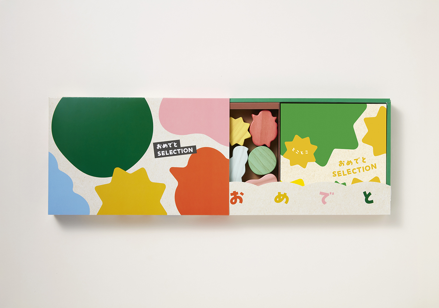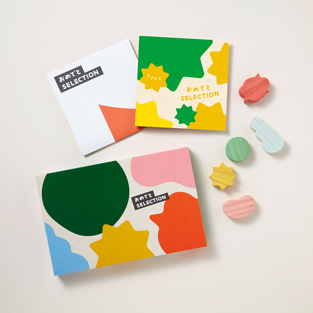 『おめでとセレクション』は、出産祝いやベビーのお誕生日プレゼントにぴったり。知育遊びを促すオリジナルのおもちゃ付きで「貰った瞬間から嬉しい」ギフトカタログです。オノマトペがモチーフのポップでかわいいデザインと、「ベビーを迎えたばかりのママとパパが本当にほしいもの」「子どもが笑顔になるもの」を集めた商品ラインナップも魅力的な、ベビーギフトの新定番です。