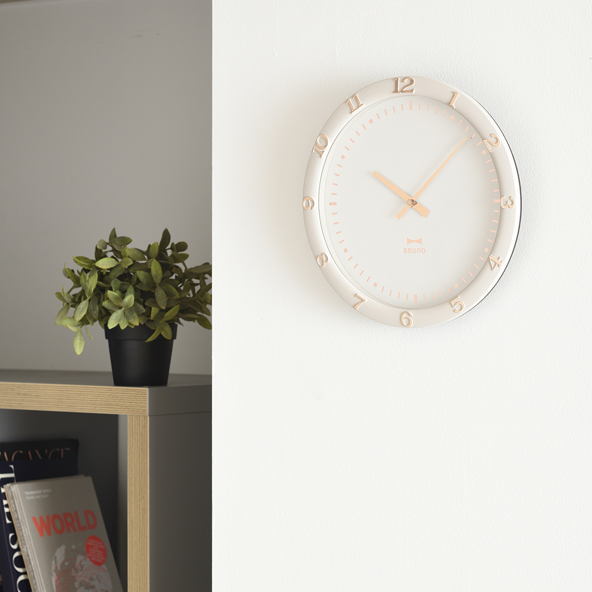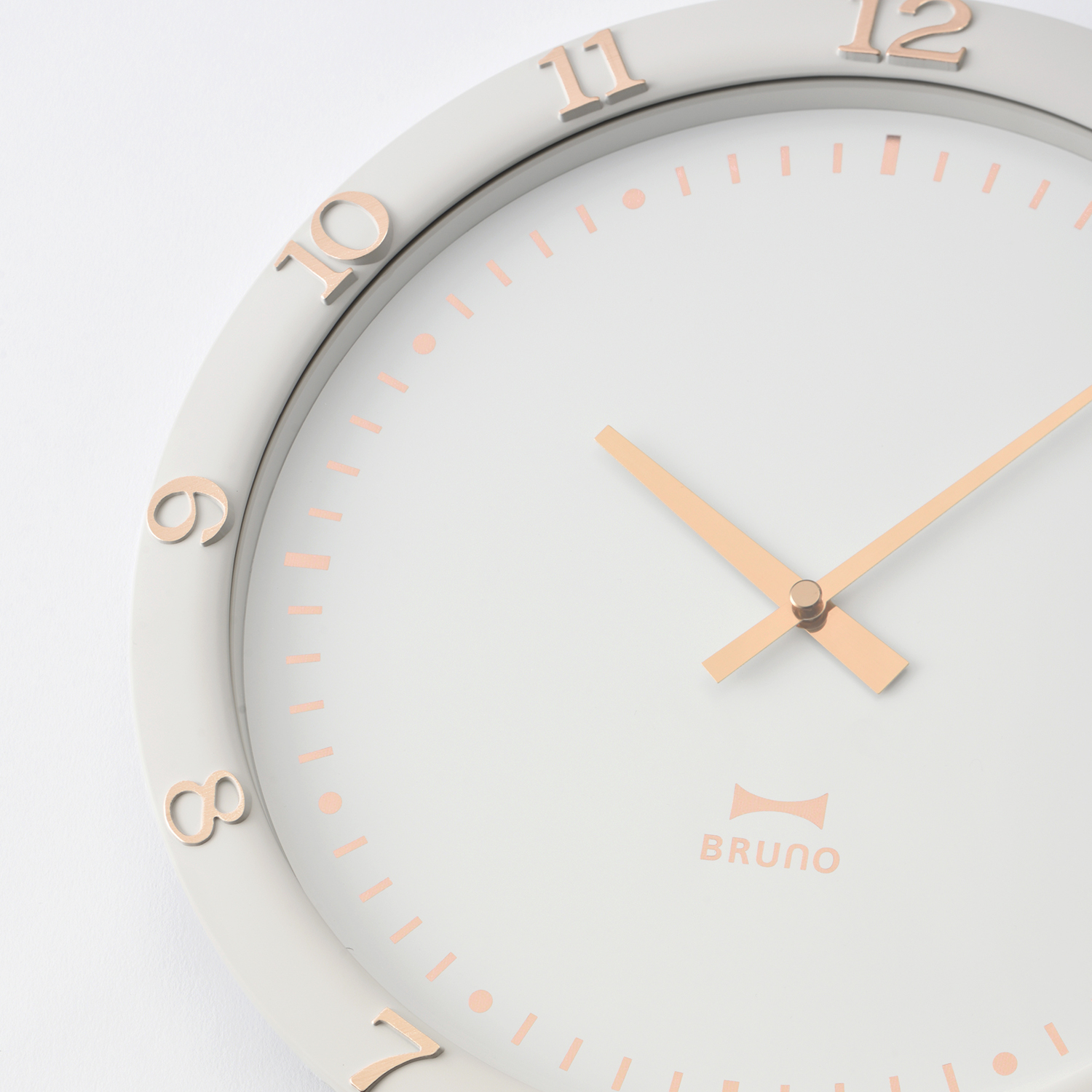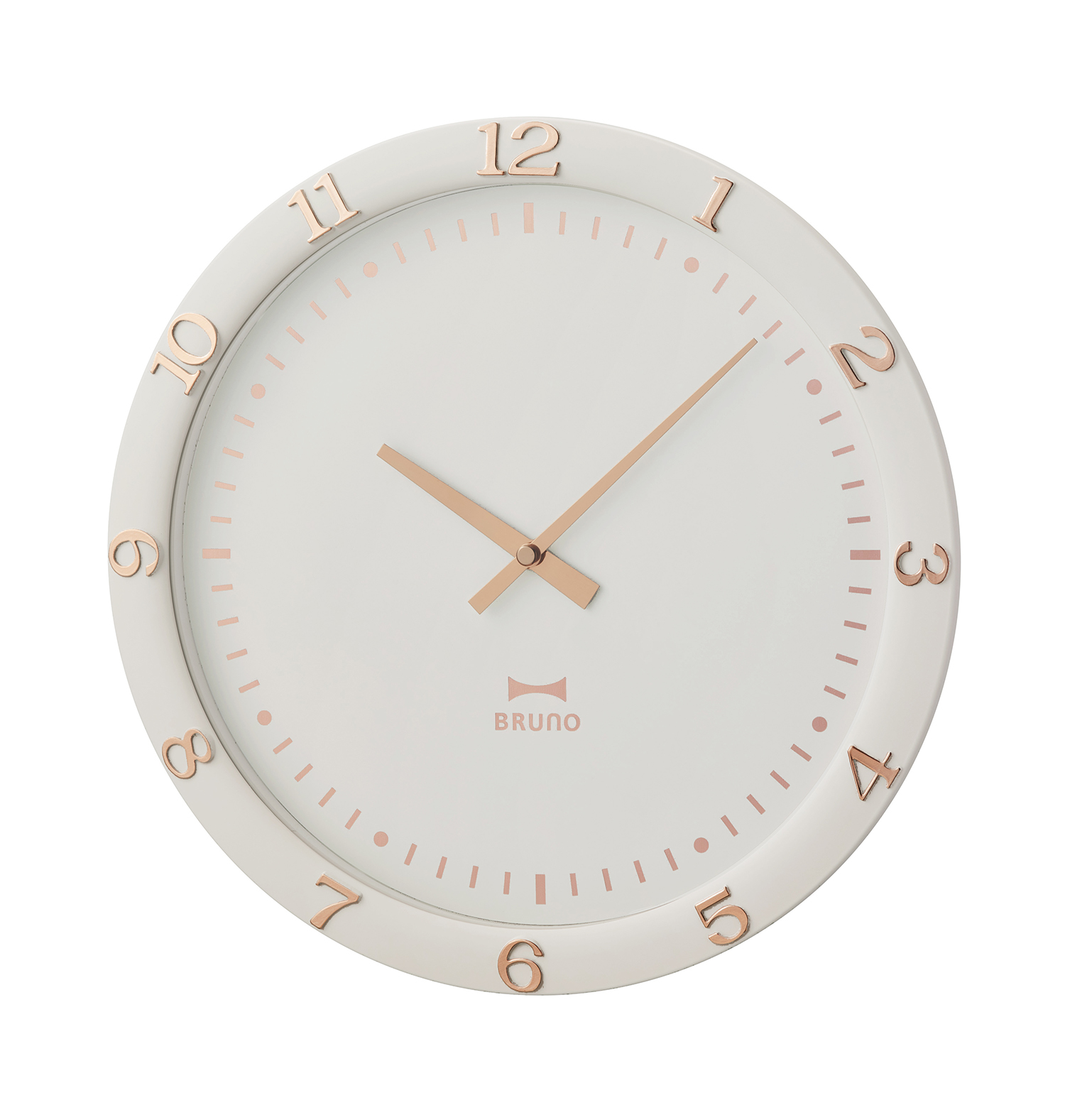 愉しみ上手な大人が集い、生まれた、ライフスタイルブランド「BRUNO(ブルーノ)」。アクセサリーのような箔押しデザインの掛け時計をお届け。文字盤にピンクゴールドの箔押しをあしらい、お部屋を上品かつ華やかな雰囲気にしてくれます。