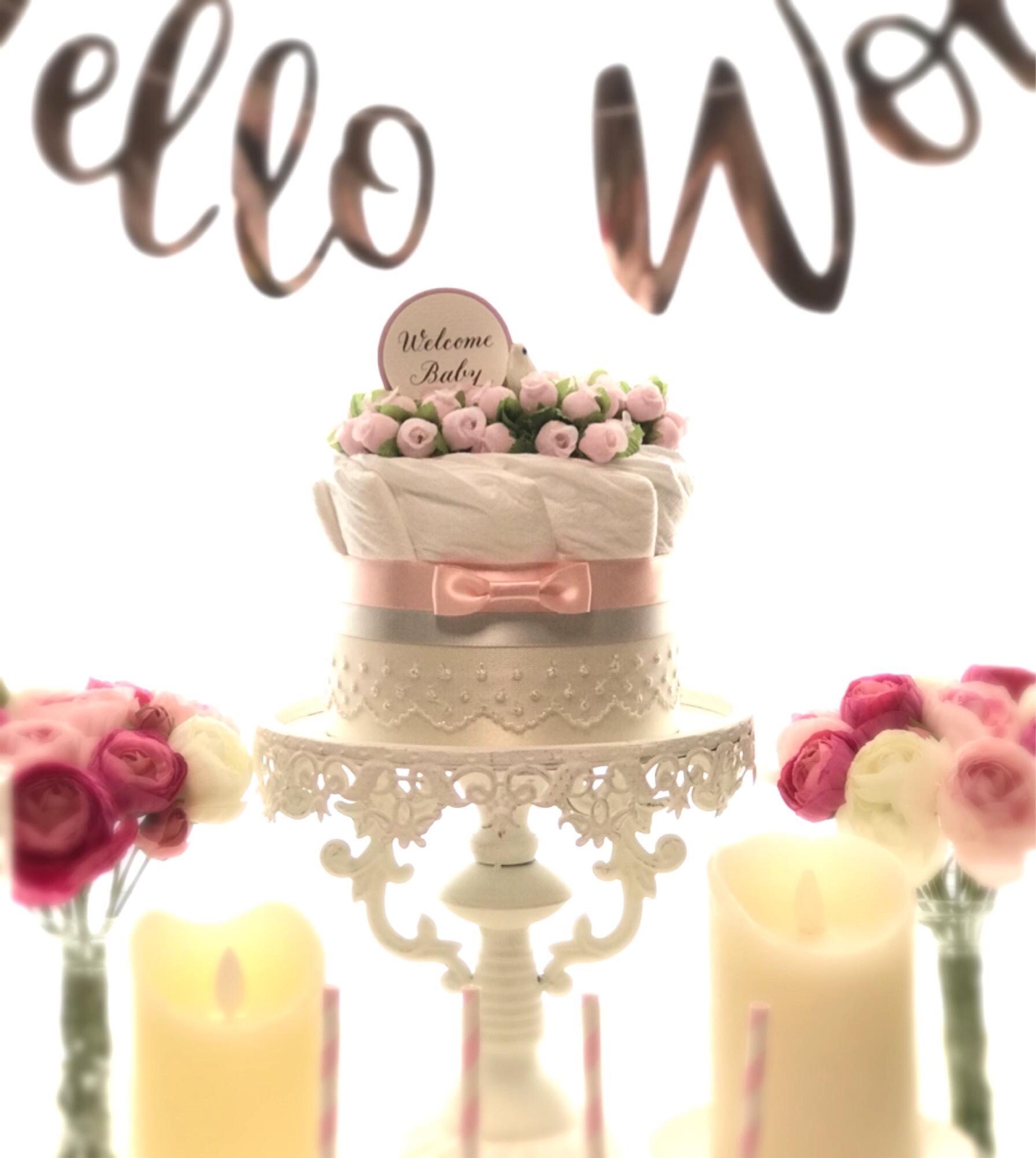 STELLA1番人気のダイパーケーキ〝Flower Gardenフラワーガーデン〟に赤ちゃんのお名前を入れられる商品です。お花の中にいる小鳥がお名前入りのピックに寄り添い、お子様のご誕生を祝福しています。受け取った方に喜ばれるお名前入りの出産祝いは、スペシャルなギフトです!