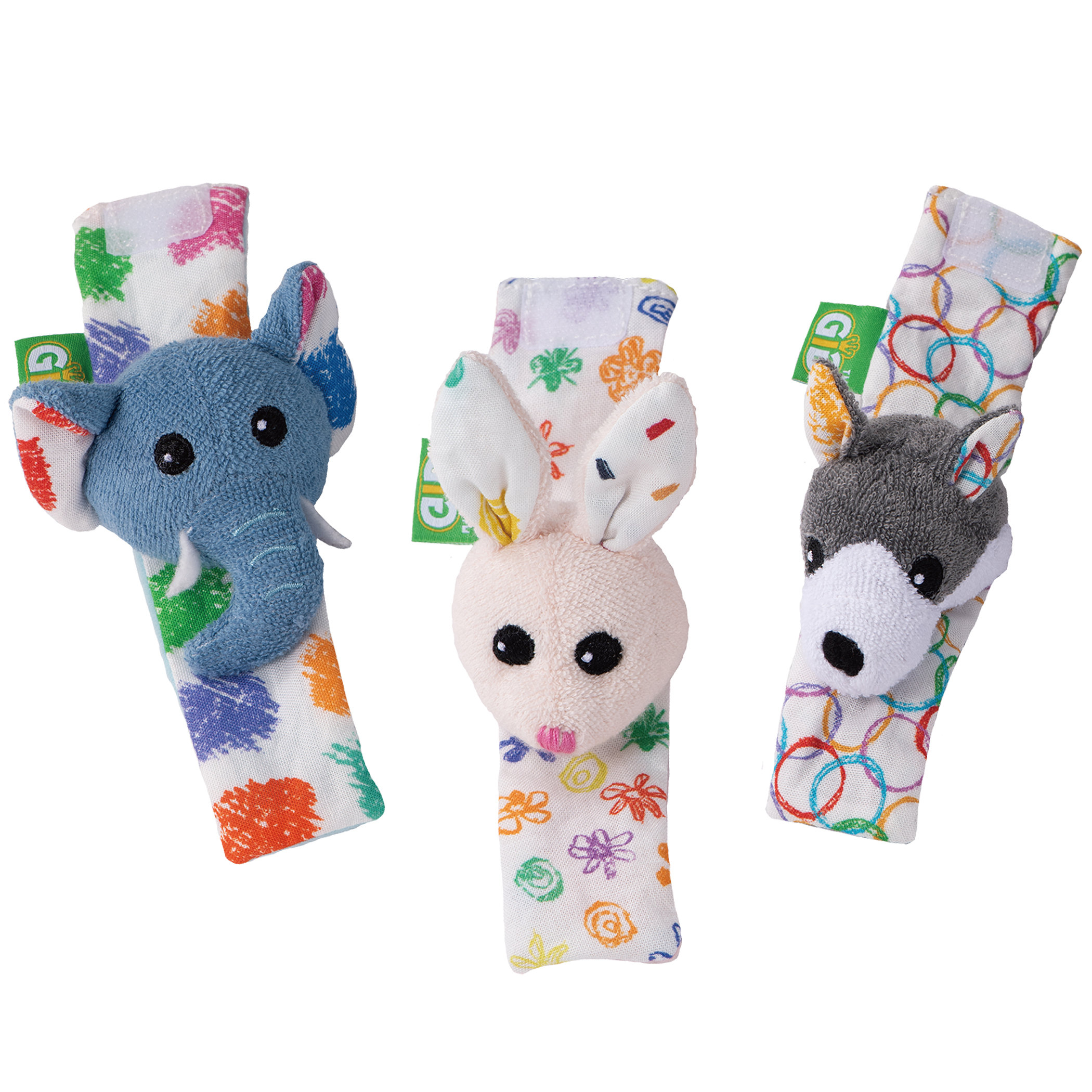 大口注文・法人のお問い合わせはこちらドゥードゥ―タオル、リストラトル、ぬいぐるみ13㎝が入ったギフトセットです。ドゥードゥータオルはフチの模様部分が赤ちゃんが好きな音が鳴る仕様に、リストラトルは握力の弱い赤ちゃんでも楽しめるよう音が鳴る仕様になっています。人気キャラクターイブ、リンリン、ハグの3種類ございます。