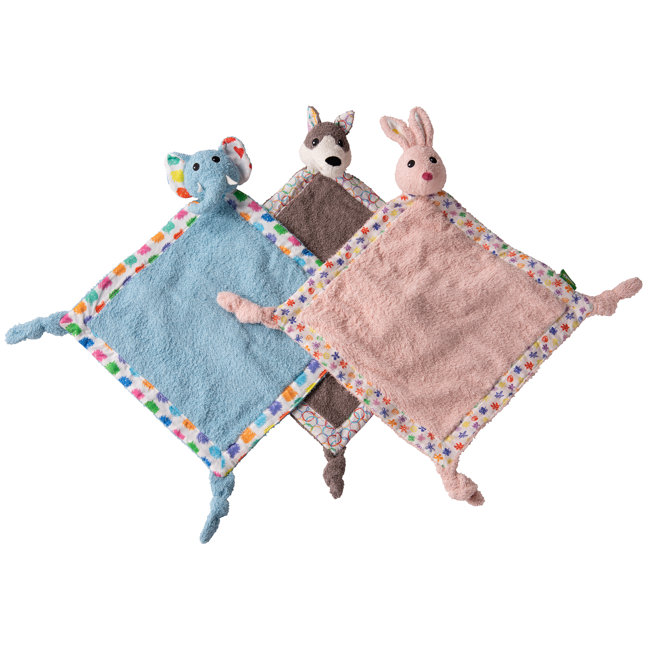 端のカラフルな柄の部分は赤ちゃんの好きなガシャガシャ音が鳴ります。タオルとしてもお使いいただけます。