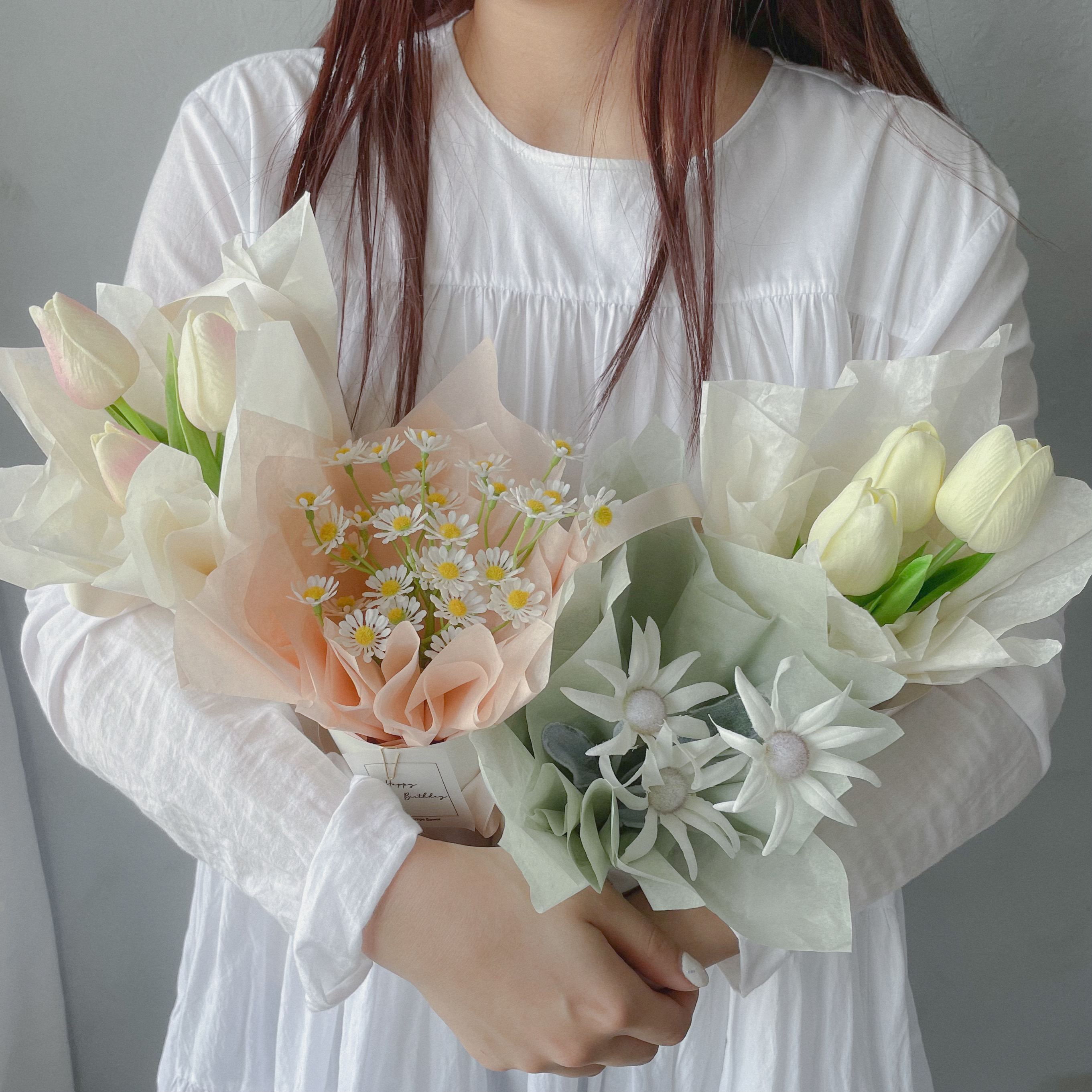 生花、プリザーブドフラワー、ドライフラワーとは異なり半永久的にお楽しみいただける“crepe flower”。可愛らしいラッピングでそのまま飾れるのも魅力。お部屋のインテリアとして、大切な方への贈り物にぜひ、いかがでしょうか。
