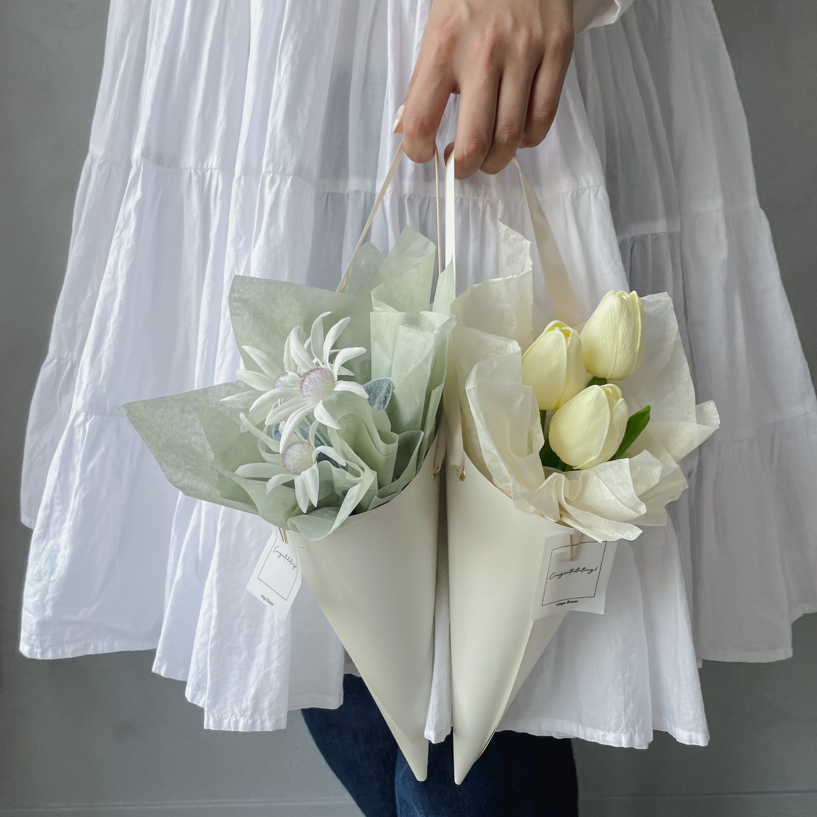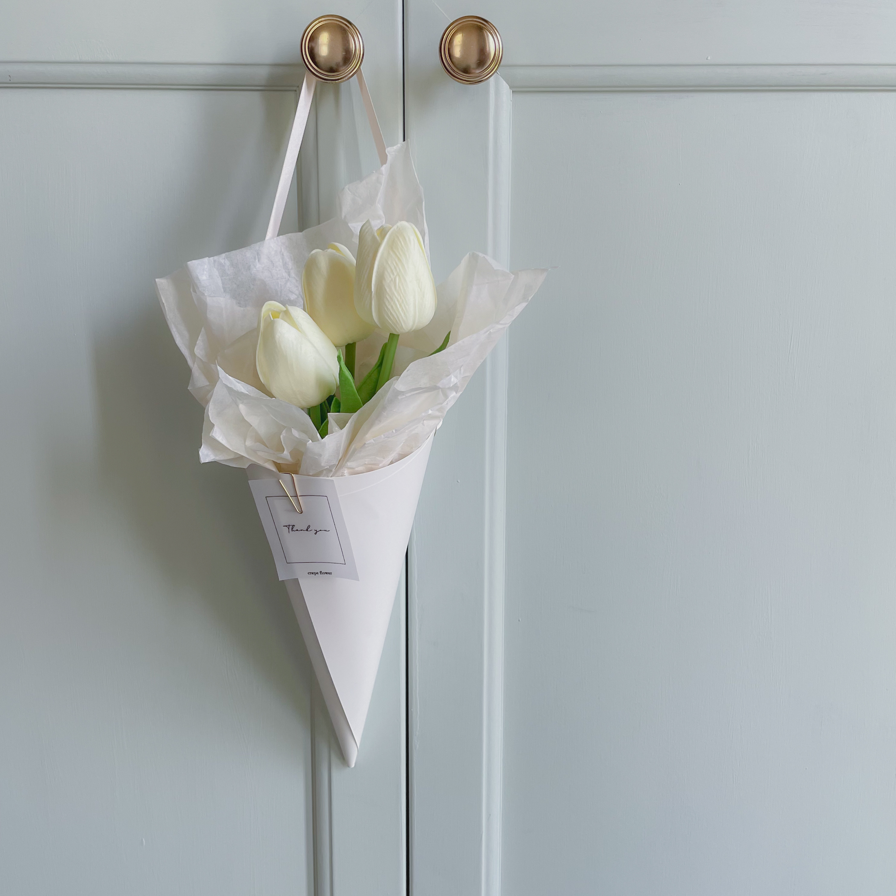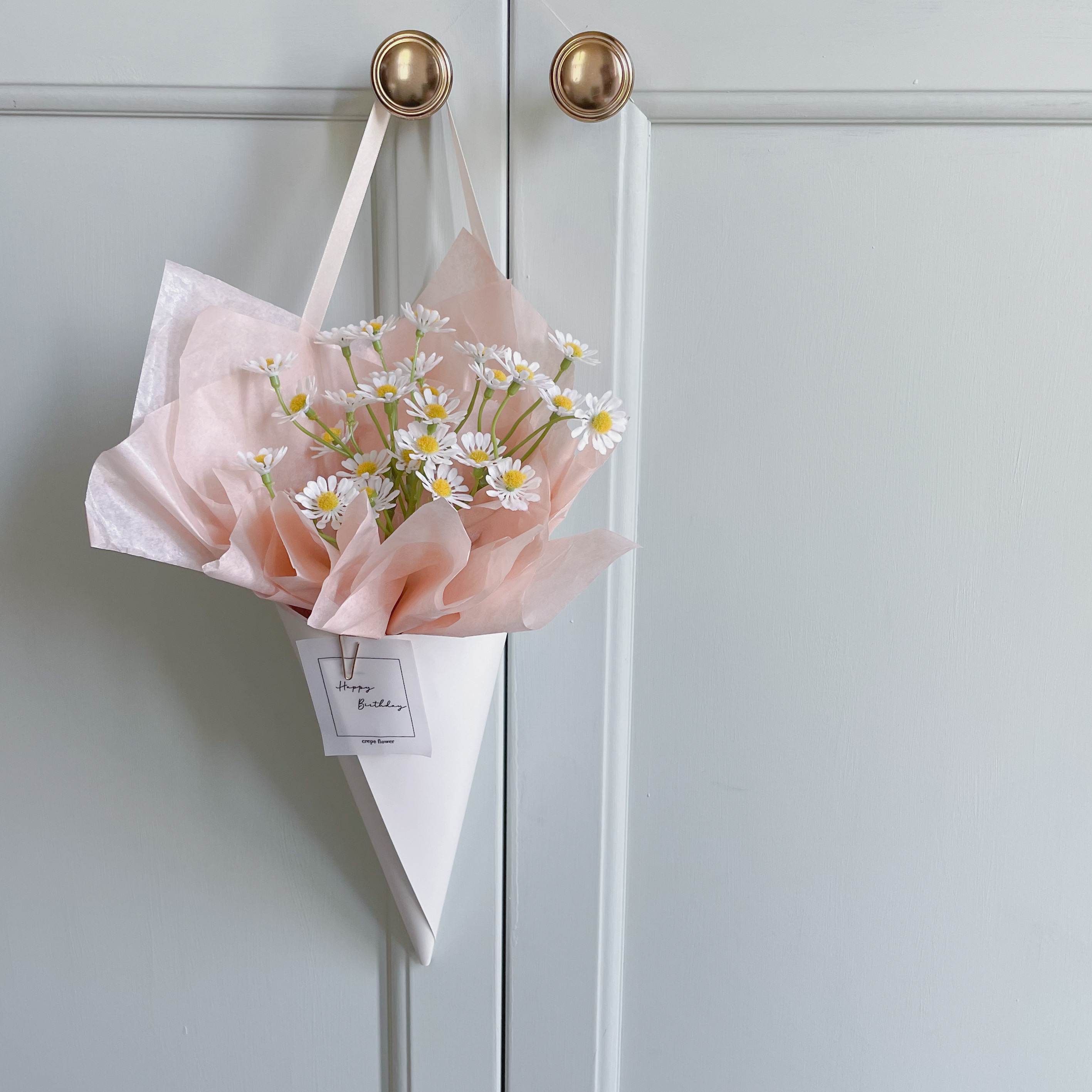 そのまま壁に飾っていただくのがおすすめですが、アイスクリームスタンドに立てても可愛いです。ラッピングから出してお好みのフラワーベースに挿していただくこともできます。