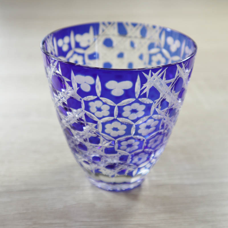 1つのグラスの中に3種類の伝統紋様が巧みに施されているぜいたくなグラスです。どの角度から見ても印象が違うので、ドリンクの色によってもさらに違った表情を見せてくれます。職人の技術が詰まった切子グラスをプレゼントしてみませんか。