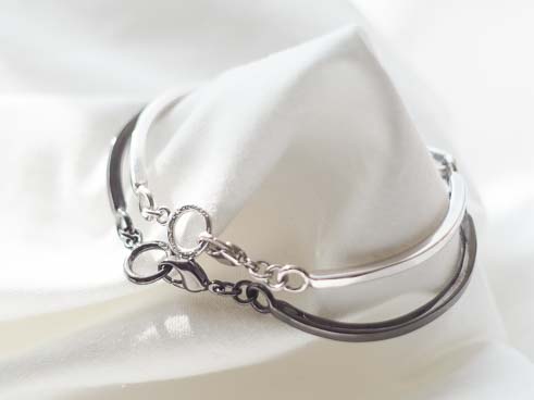 大口注文・法人のお問い合わせはこちらシンプルにスタイリッシュなデザインの「ブレスレット」です。センターでエンドレスにクロスを描き続けるインフィニティ―が、永遠を表すアクセサリー♡女性はシルバー、男性はブラックカラーとシンプルな作りが特徴で、どんなお洋服にも合う色味です◎
