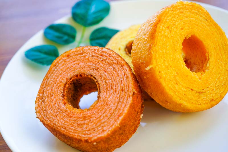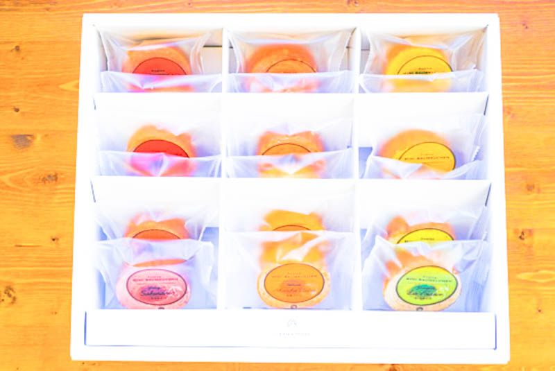 北海道赤肉メロン、栃木とちおとめ苺、山形さくらんぼ、白桃ラ・フランス、沖縄マンゴーの6種の味になっているバウムクーヘン。 何層にも重ねられたバウムは濃厚な味をしています。 それぞれの味が3個ずつあるのでたっぷり楽しめます。