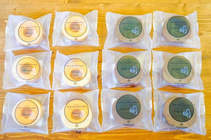 ハニーとベルギーチョコの2種類のバームクーヘンセットです。各6個入でお届けします。