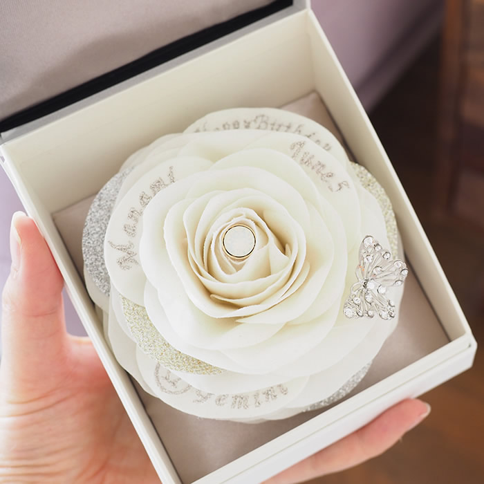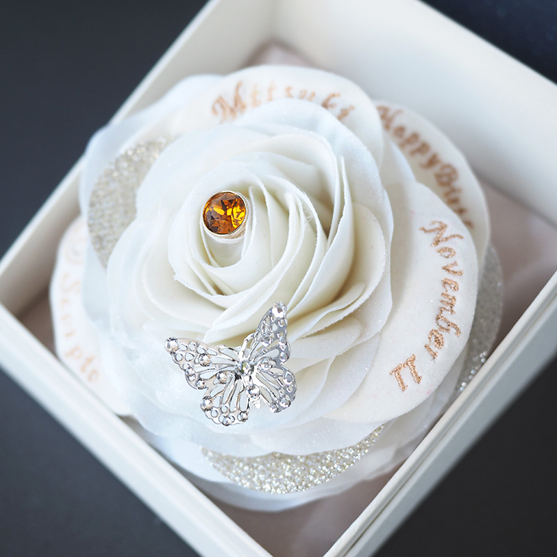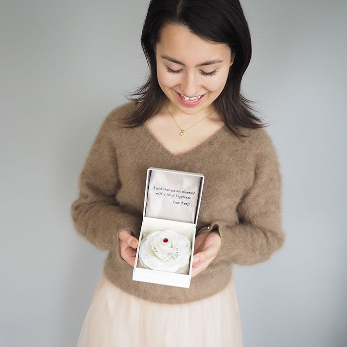 【11月生まれの誕生日プレゼント】誕生石ローズボックス白バラ(トパーズ)
