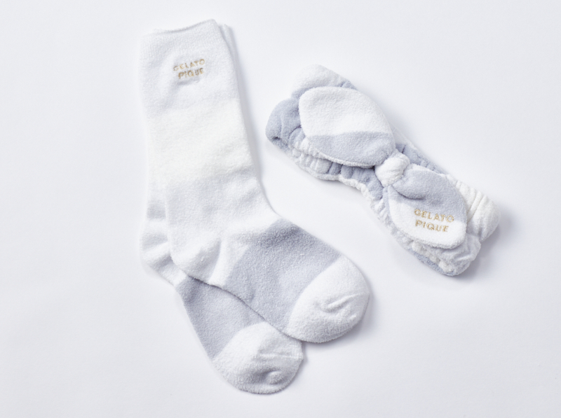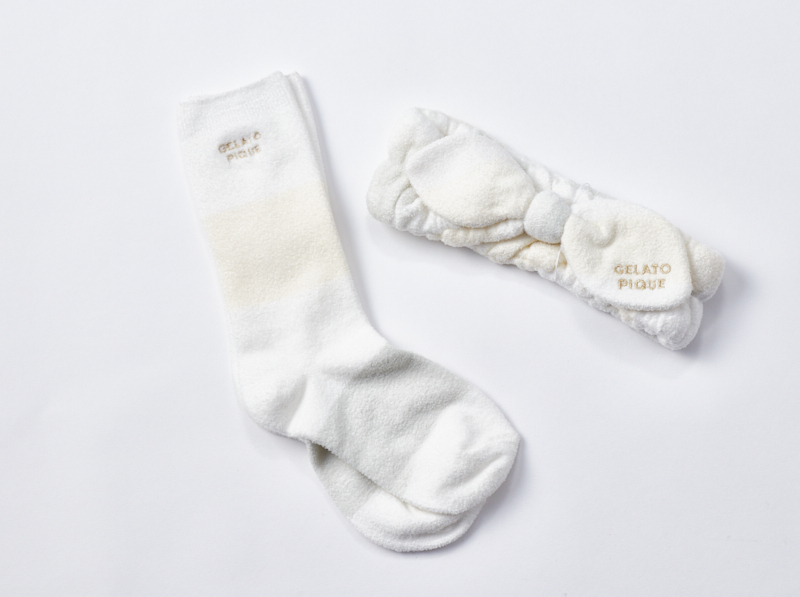 【10%OFF セール中】 “大人のデザート”をコンセプトにしたルームウェアブランド「gelato pique(ジェラートピケ)」の滑らかな質感のスムーズィー素材を使用したヘアバンド&ショートソックス2点セット。爽やかな3色をご用意しました。
