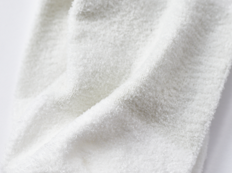 スムーズィー素材は、毛足が短く、肌に吸い付くような滑らかな質感が特長です。一度着たら他のものを着れなくなるほど軽やかな着心地は、1年を通してお楽しみいただけます。