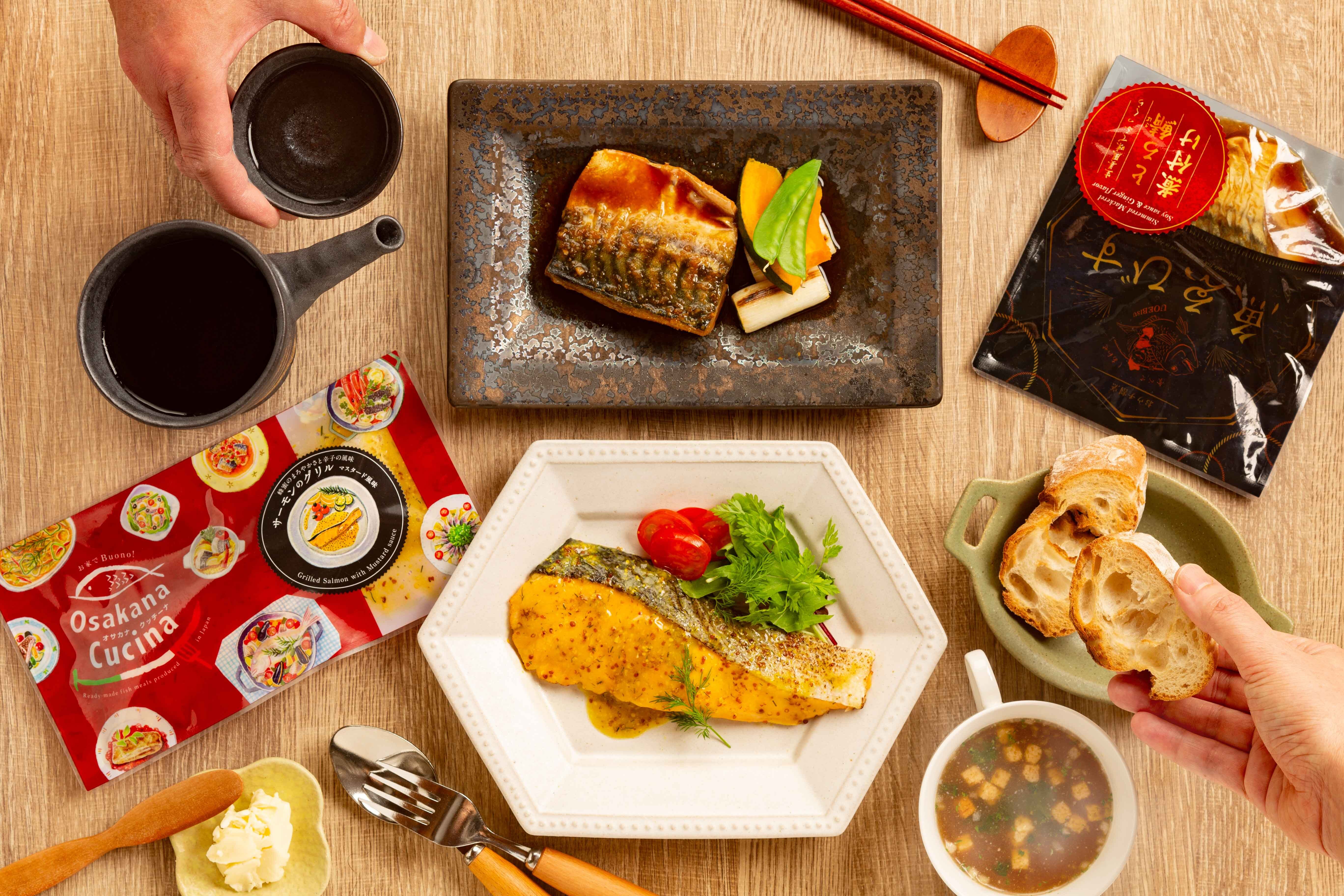 大口注文・法人のお問い合わせはこちら魚匠えびすの洋のブランドOsakana Cucinaの中の人気商品の詰め合わせです。香り華やかなフレンチマスタードに蜂蜜の優しい甘みを加えた風味豊かなソースをアトランティックサーモンに合わせた「サーモンのグリル マスタード風味」、バジルの爽やかな風味とパルメザンチーズのうま味豊かなジェノベーゼソースを脂の乗った鰆に合わせた「鰆のグリル ジェノベーゼソース」パンと合わせて、またワインを片手に味わっていただけるセットです。