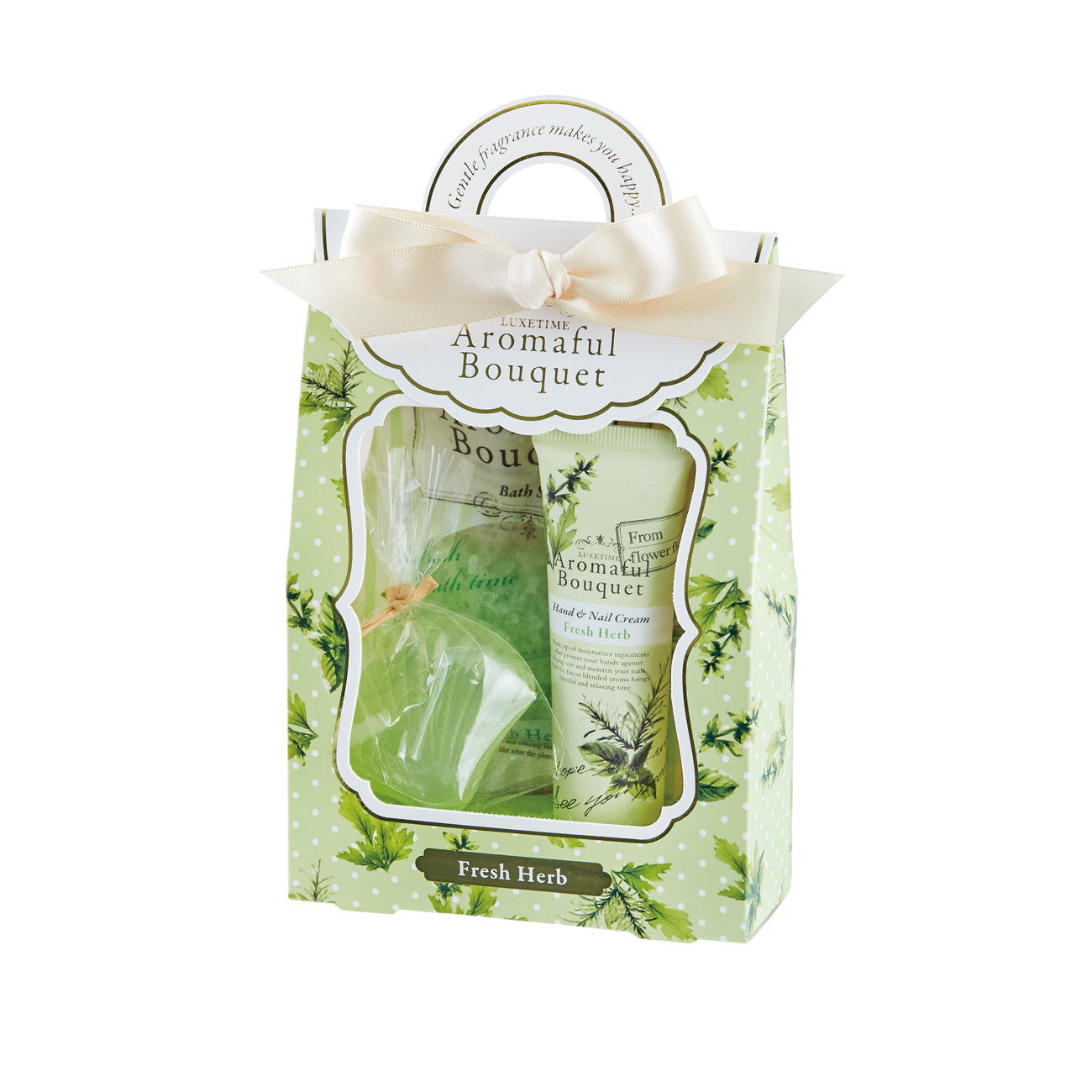 大口注文・法人のお問い合わせはこちらバスソルト、ゲストソープ、ハンド&ネイルクリームがセットになった贅沢なブレンドアロマのお手軽ギフト。