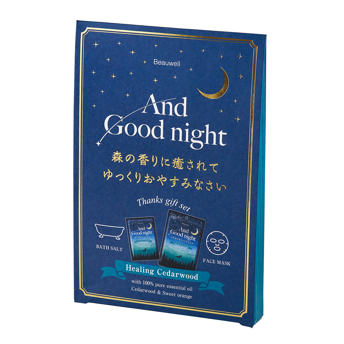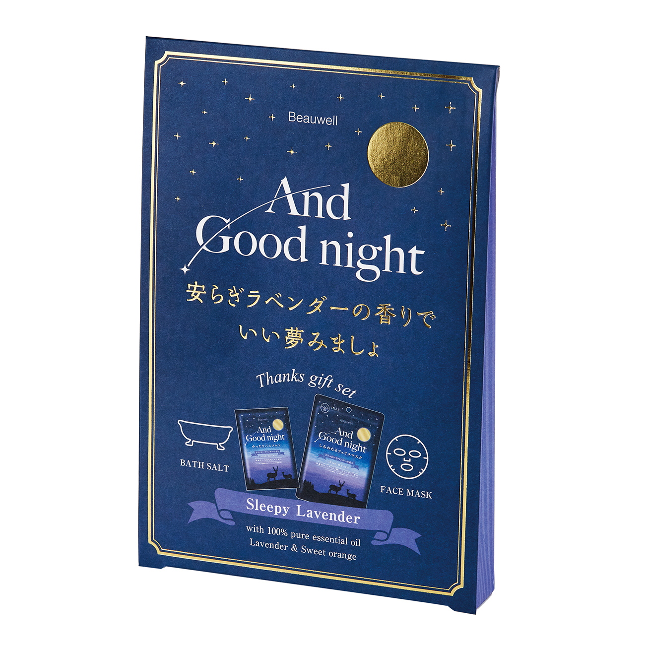 日々の暮らしに大切な “健やかであること、美しくあること”を追求したライフスタイルアイテムを展開するBeauwell(ビューウェル)のアンドグッドナイト サンクスギフト。天然アロマで安らぐ、フェイスマスクとバスソルトがおやすみ前の素敵な時間を作り出します。
