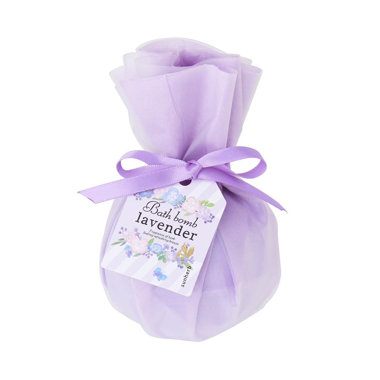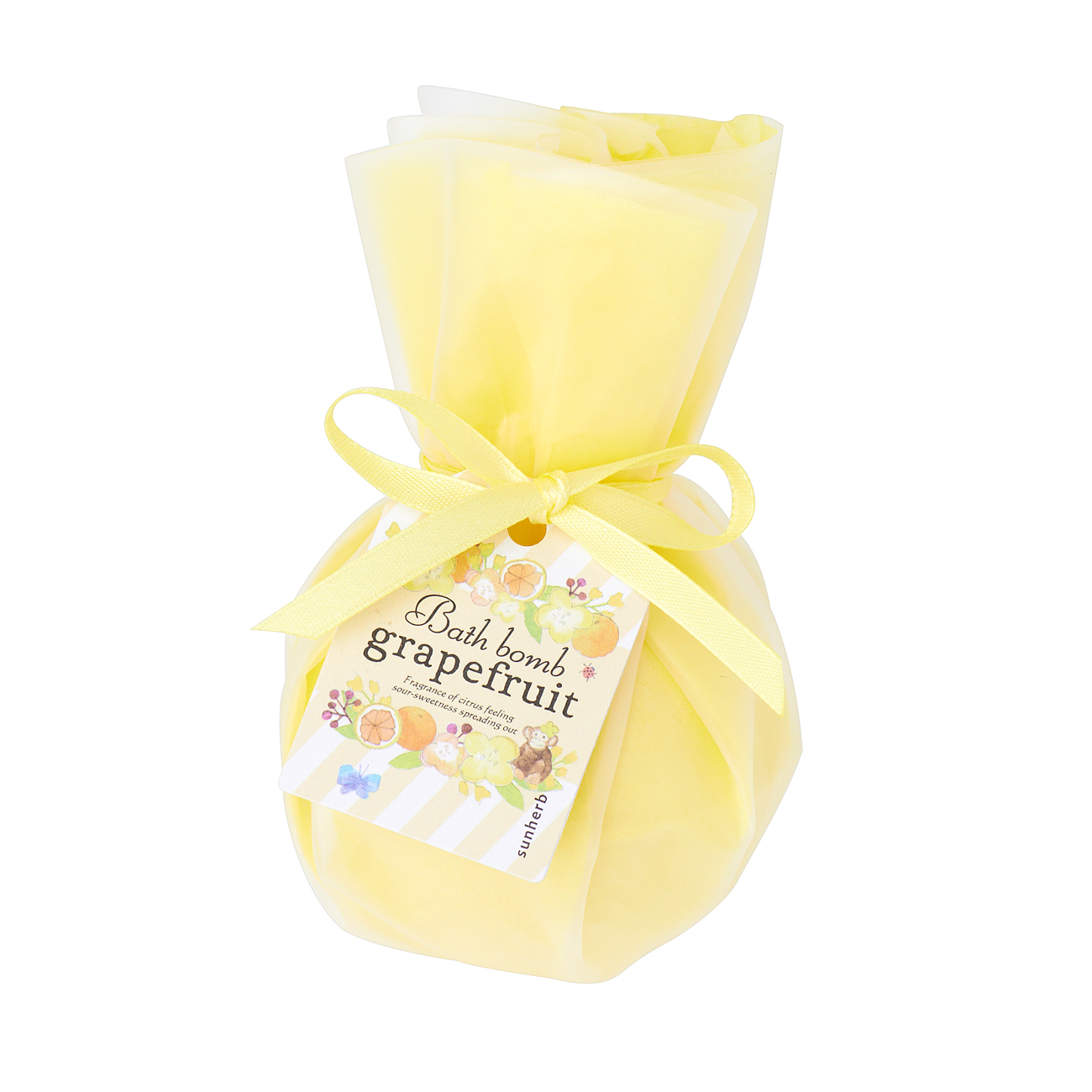 心地よい香りで暮らしを楽しく彩るアイテムをお届けするブランド「sunherb(サンハーブ)」のバスボムⅡです。丸いボールの形をした入浴料は、お湯に入れるとシュワシュワと香りながら溶けていく様子が楽しめます。ラッピングもキュートで、4種類の香りからお選びいただけます。