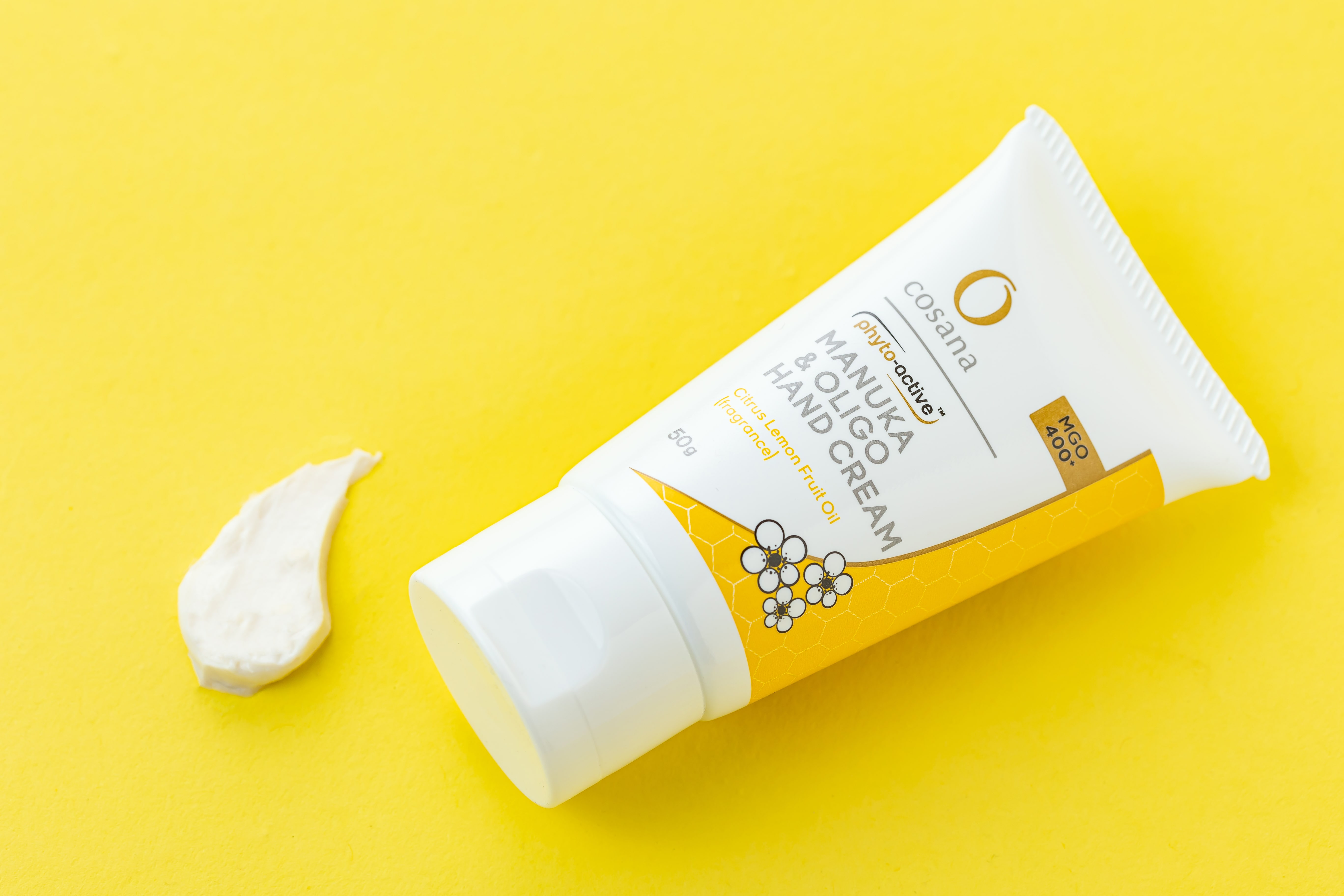 【するっと伸び、しっとりしながら、べたつかない】 保湿成分として、ニュージーランド産マヌカハニー(MGO100+グレード)を配合した、やさしく肌になじんでうるおうハンドクリームです。 レモン果実油のさわやかな香り。 おうちや会社ではもちろん、バッグに入れて持ち運びしやすい50gサイズで、外出先でのハンドケアにも最適です。手指の乾燥や保湿対策にご使用ください。 ※合成香料、合成着色料、パラベン不使用