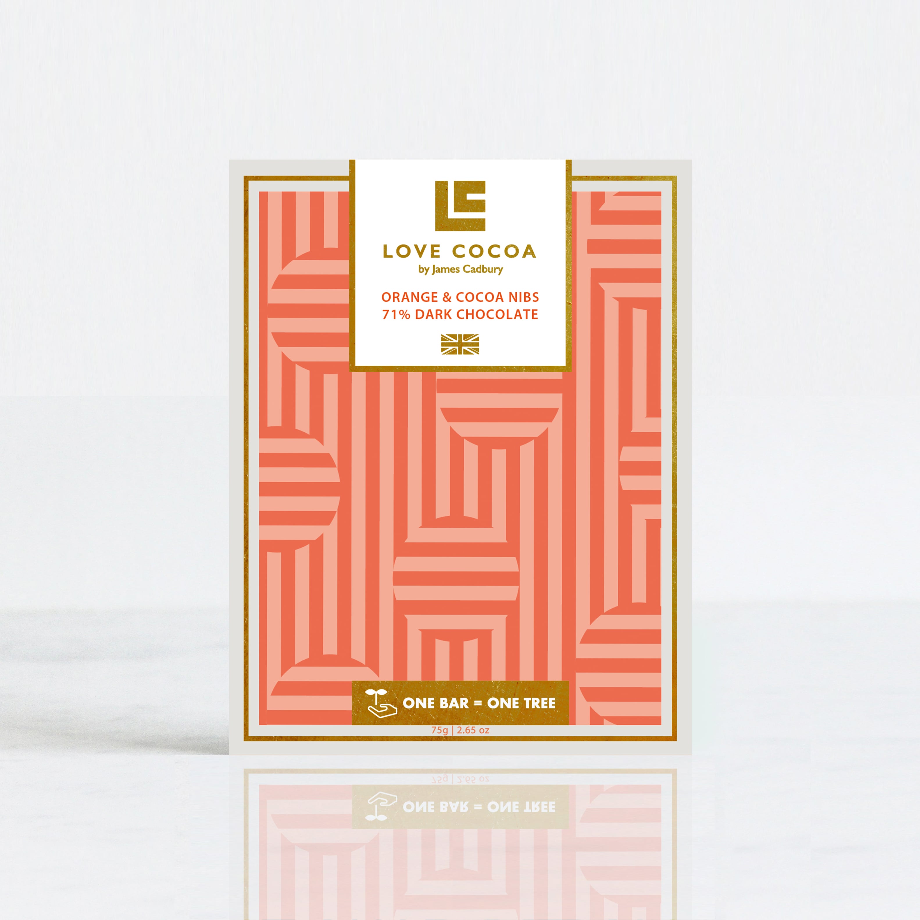 「LOVE COCOA(ラブココア)」は、イギリスでは誰もが知っている老舗チョコレートメーカーCadbury(キャドバリー)の創設者、 John Cadburyのひ孫James Cadburyが、2016年にロンドンで立ち上げたチョコレートブランド。 Cadbury家のモットー’absolutely pure, therefore the best’ に従って、南アメリカの最高品質のカカオを使用したチョコレートバーを作っています。 チョコレートの味やクオリティはもちろん、パッケージの素材や契約農家との取り組みなど、サステイナブルな活動にも力を入れています。