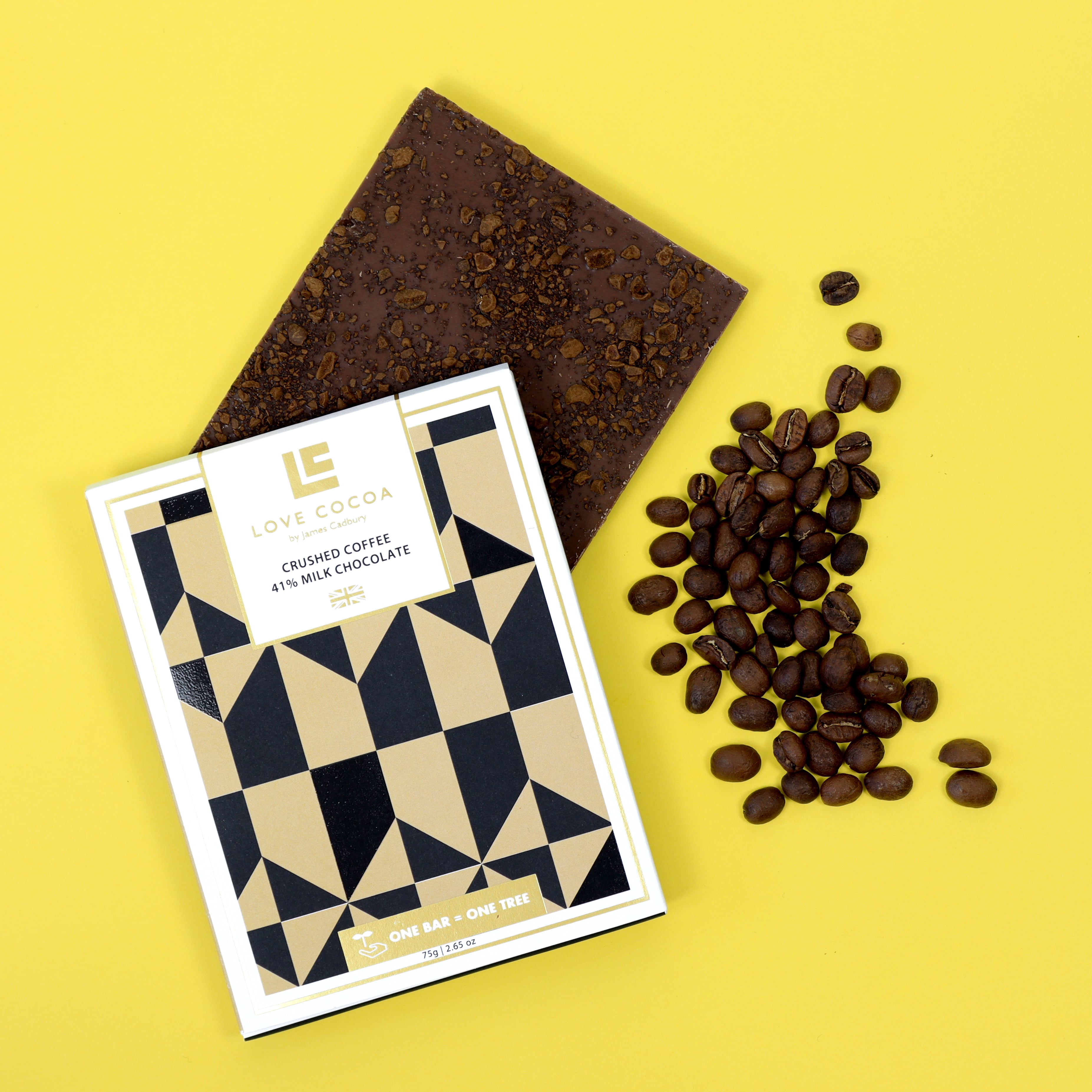 ロンドンで立ち上げたチョコレートブランド「LOVE COCOA(ラブココア)」。くちどけの良いミルクチョコレートの後に、クラッシュしたコーヒー豆が口の中ではじける、まるで“食べるカフェオレ”のようなチョコレートをお届け。コーヒーが苦手な方でも楽しんでいただける一枚です。