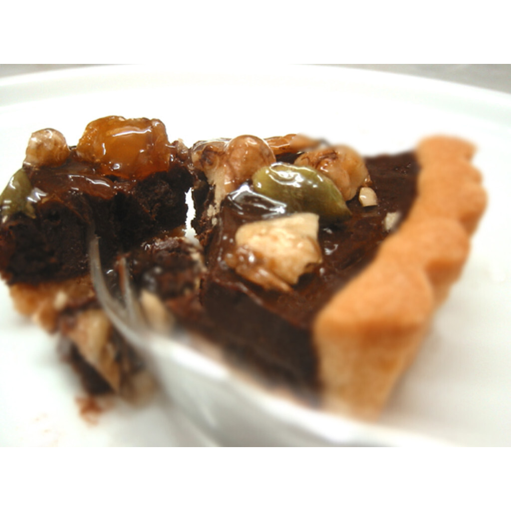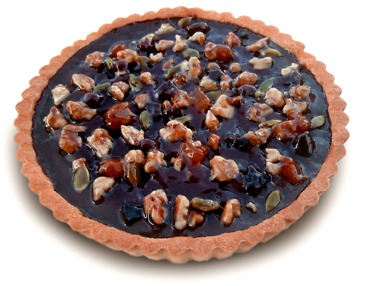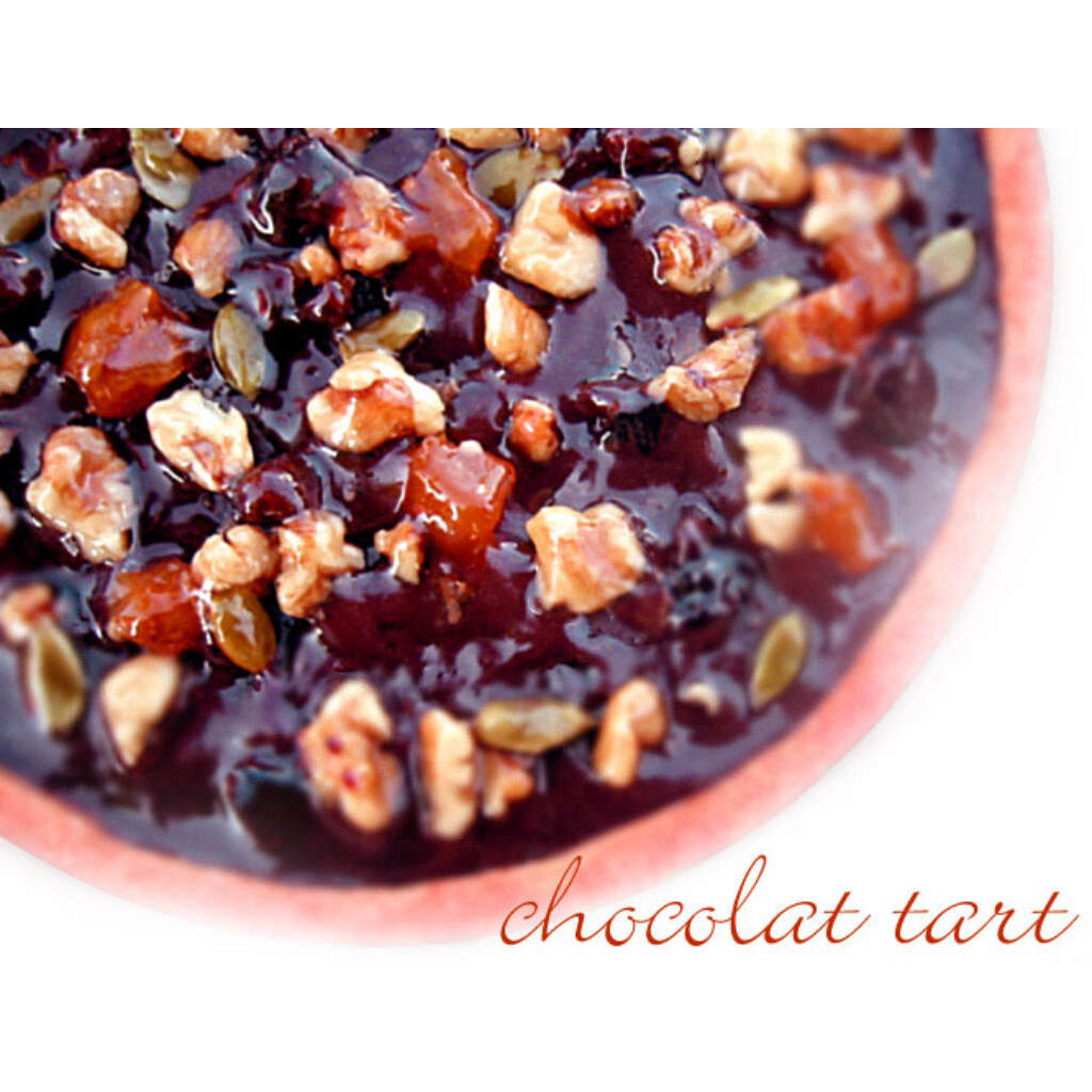 たっぷりのナッツ&ドライフルーツが上だけではなくチョコレートクリームの中にも焼き込まれています。くるみ・パンプキンシード・ラム酒にじっくり漬け込んだドライの杏子・レーズン・プルーン。 一口ごとに微妙に違う味わいまで楽しめてとても食べ応えのあるタルトです。ご自宅用だけではなく贈り物としても贅沢なケーキです。バレンタインデーの贈り物にもおすすめです。