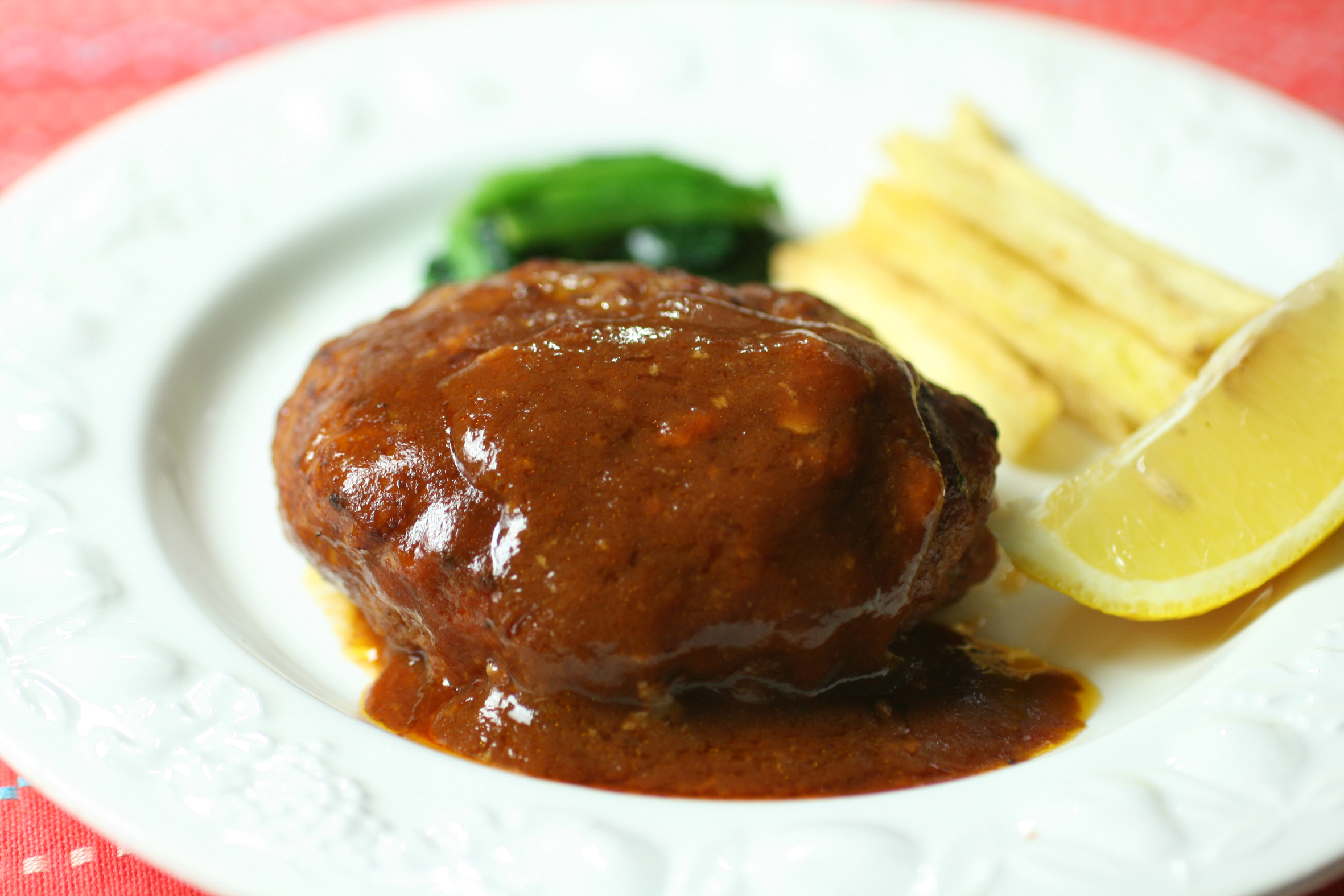 大口注文・法人のお問い合わせはこちら肉汁の旨味たっぷりのオリジナルデミグラスソースがかかったハンバーグです。お野菜や付け合わせにお好きなワインを合わせれば、お家で気軽にレストラン気分をお楽しみいただけます。