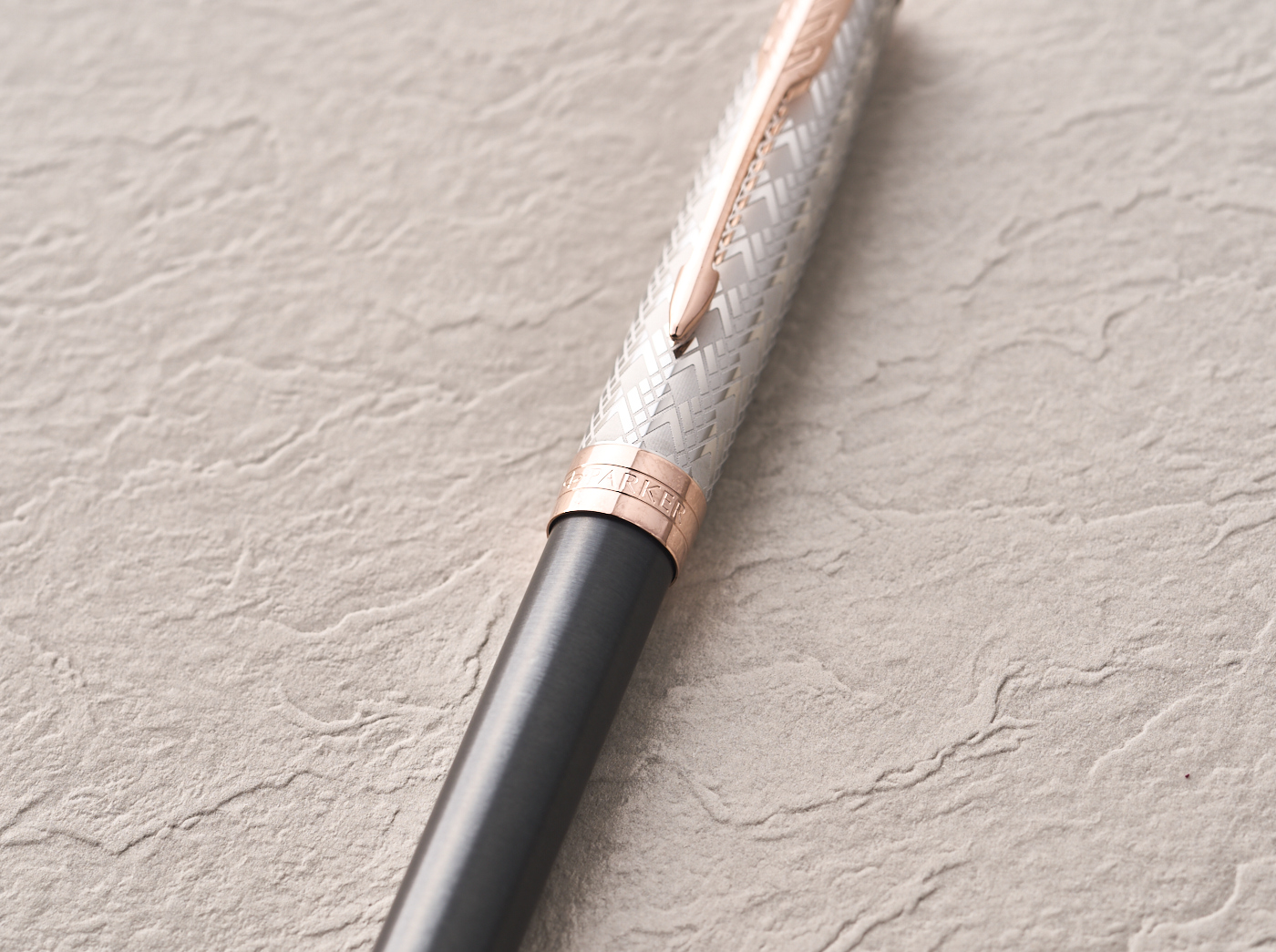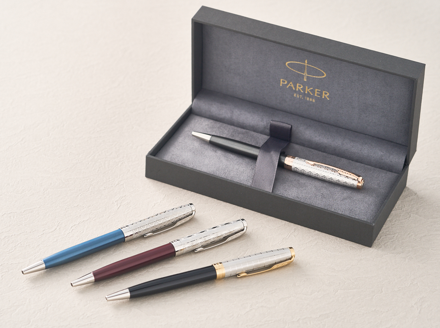 大口注文・法人のお問い合わせはこちらキャップのケミカルエッチング装飾、ボディのカラー、トリムのカラーが融合して奏でる抜群のハーモニーが特徴の「PARKER(パーカー)」の新作。 キャップには個性を放つクラシカルな4つのパターンを、ボディにはユニセックスでモダンなカラーを採用しました。トリムのコンビネーションにより、洗練された輝きを放つスタイリッシュな仕上がりに。「ソネット プレミアム」の新たな進化の歴史がここにスタートします。