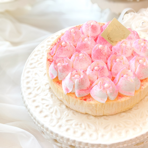 大口注文・法人のお問い合わせはこちらふんわりと咲き誇る薔薇をイメージしたデコレーションの「メルティーローズシリーズ」の、ピンク色のベイクドチーズケーキ(5号サイズ)です。4~8名でお召し上がりいただけます。エレガントなデザインと冷凍とは思えない美味しさは、幅広い年代の方に好評です。
