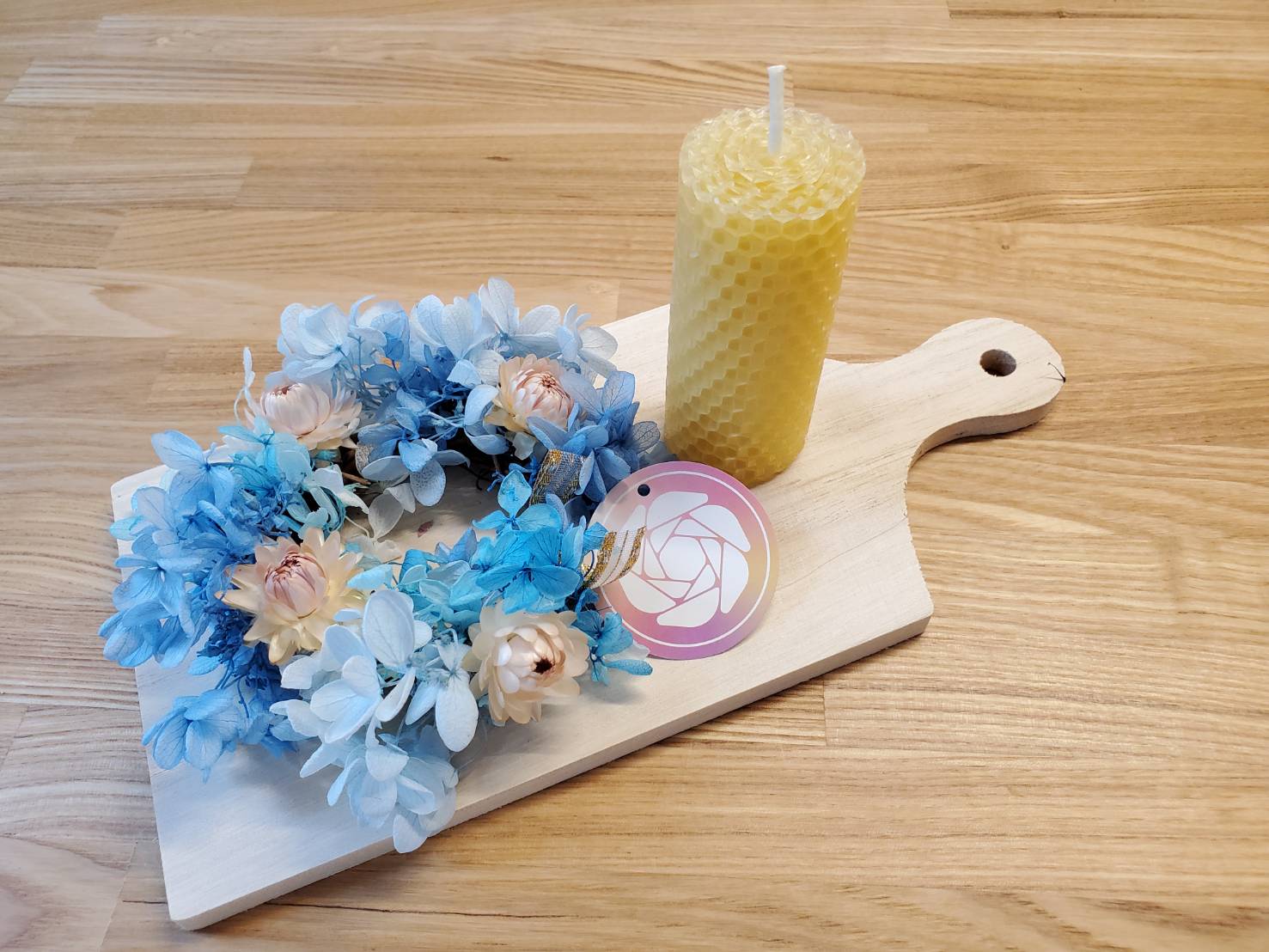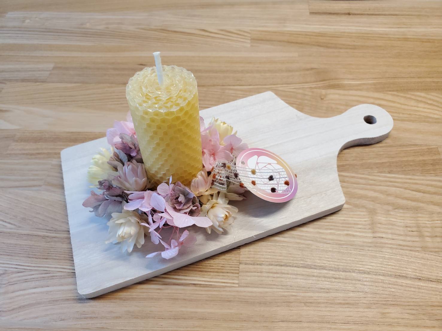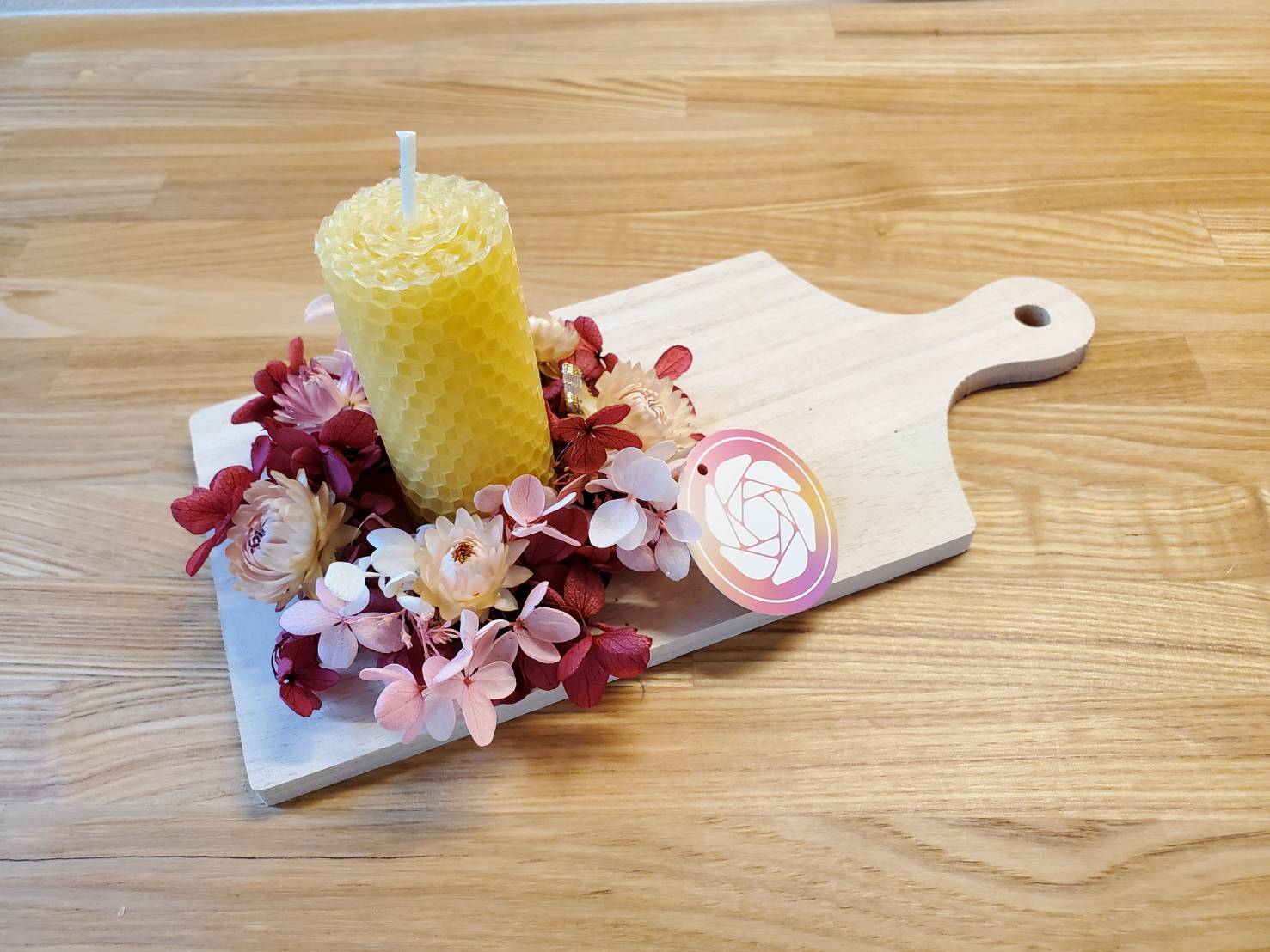 フラワーデザインが華やかなカッティングボードは、壁掛けにもできるのでキッチンにぶら下げるのもおしゃれですね。蜜ろうキャンドルは環境にも優しく、天然素材のものが好きな方にもおすすすめです。キャンドルとして使うのはもちろん、ハチミツの濃厚な香りでアロマ効果もあります。花とキャンドルの両方が楽しめるギフトをプレゼントしてみませんか?