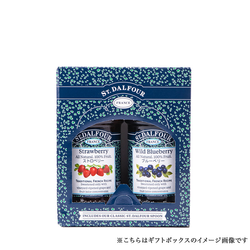 世界120ヶ国以上で愛される「St.Dalfour(サン・ダルフォー)」のフルーツスプレッドを、かわいくギフトボックスに詰め合わせました。果実の形をそのまま残した作りで、かつ砂糖、保存料不使用であるため、果実の美味しさと食感をお楽しみいただけます。オリジナルスプーン付き。