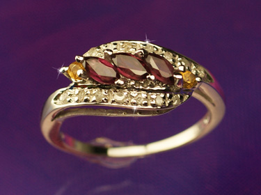| 素材・材質 | ・ストーン ロードライトガーネット カット: マーキスカット/5×2.50mm 個数: 3/0.45カラット シトリーン カット: ラウンドカット/2.00mm 個数: 2/0.10カラット |