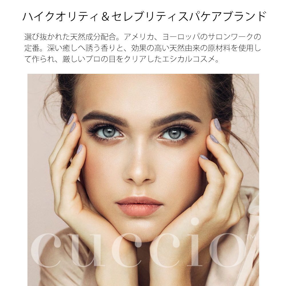 弊社は日本で唯一正規独占販売権をもつ企業で、cuccioのお肌につけるケアラインは全て化粧品登録済。国外生産だからこそ厳しい輸入審査や検査があります。輸入する毎に日本国内でも商品の菌検査・検品をしているからこそ安心かつ安全な製品を皆様にご提供させていただく事ができます。 ◆世界81ヵ国で取扱い有。40年の歴史を持つ、カリフォルニア生まれのオーガニックブランド”cuccio naturale(クシオ ナチュラーレ)。厳しい基準をクリアしたケア商品をご提供します。 ◆スパやネイルサロン等のプロフェッショナルとタッグを組み開発された商品で、多くのサロンで取り扱われている商品です。