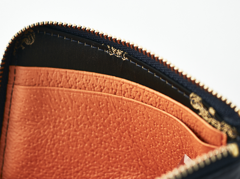 内装は、植物タンニン鞣しによって鞣されたエコレザー(豚)を使用。異素材の組み合わせからなる単調に感じさせない色の使い方がシンプルさの中のこだわりです。 裏地は、オリジナルジャガードを使用。キー&コインキーのアイコニックなアイテムを含めた6型を展開予定です。