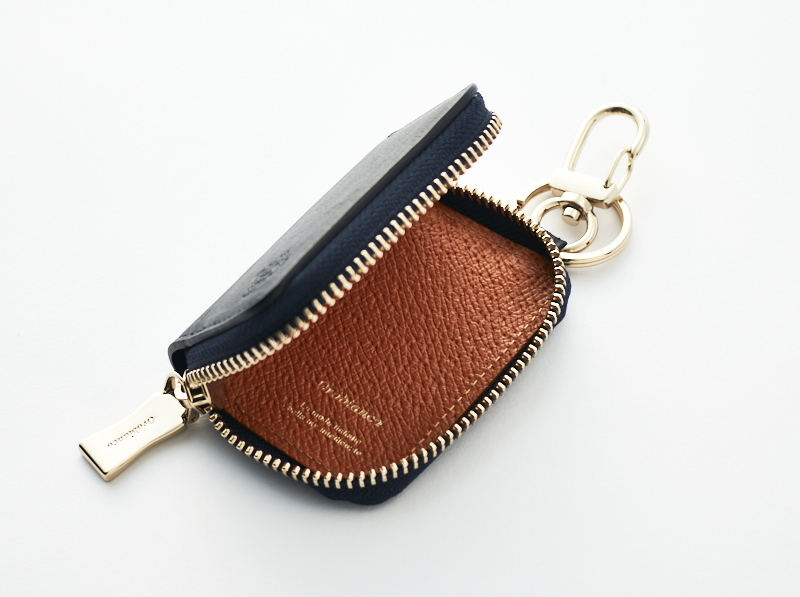 内装は、植物タンニン鞣しによって鞣されたエコレザー(豚)を使用。異素材の組み合わせからなる単調に感じさせない色の使い方がシンプルさの中のこだわりです。 裏地は、オリジナルジャガードを使用。キー&コインキーのアイコニックなアイテムを含めた6型を展開予定です。