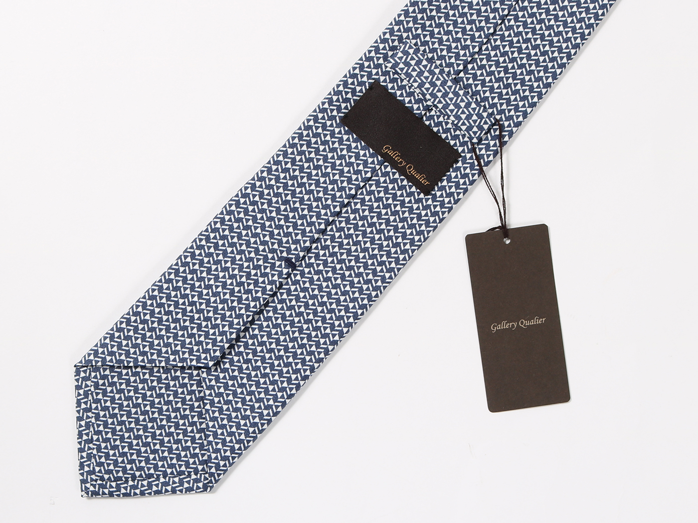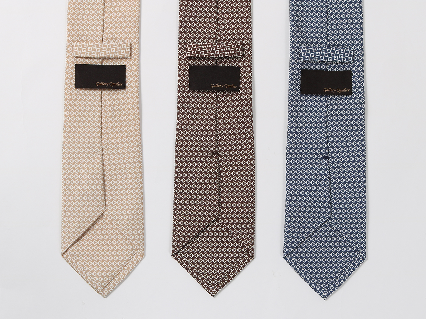 高いクオリティで特別な一点に出会えるようなモノづくりをしている「Gallary Qualier(ギャラリー クオリエ)」の、マイクロジオメトリック柄ネクタイです。100%シルク素材で1本1本丁寧に作られています。柔らかく結びやすいネクタイは仕事にもプライベートにも使いやすいです。